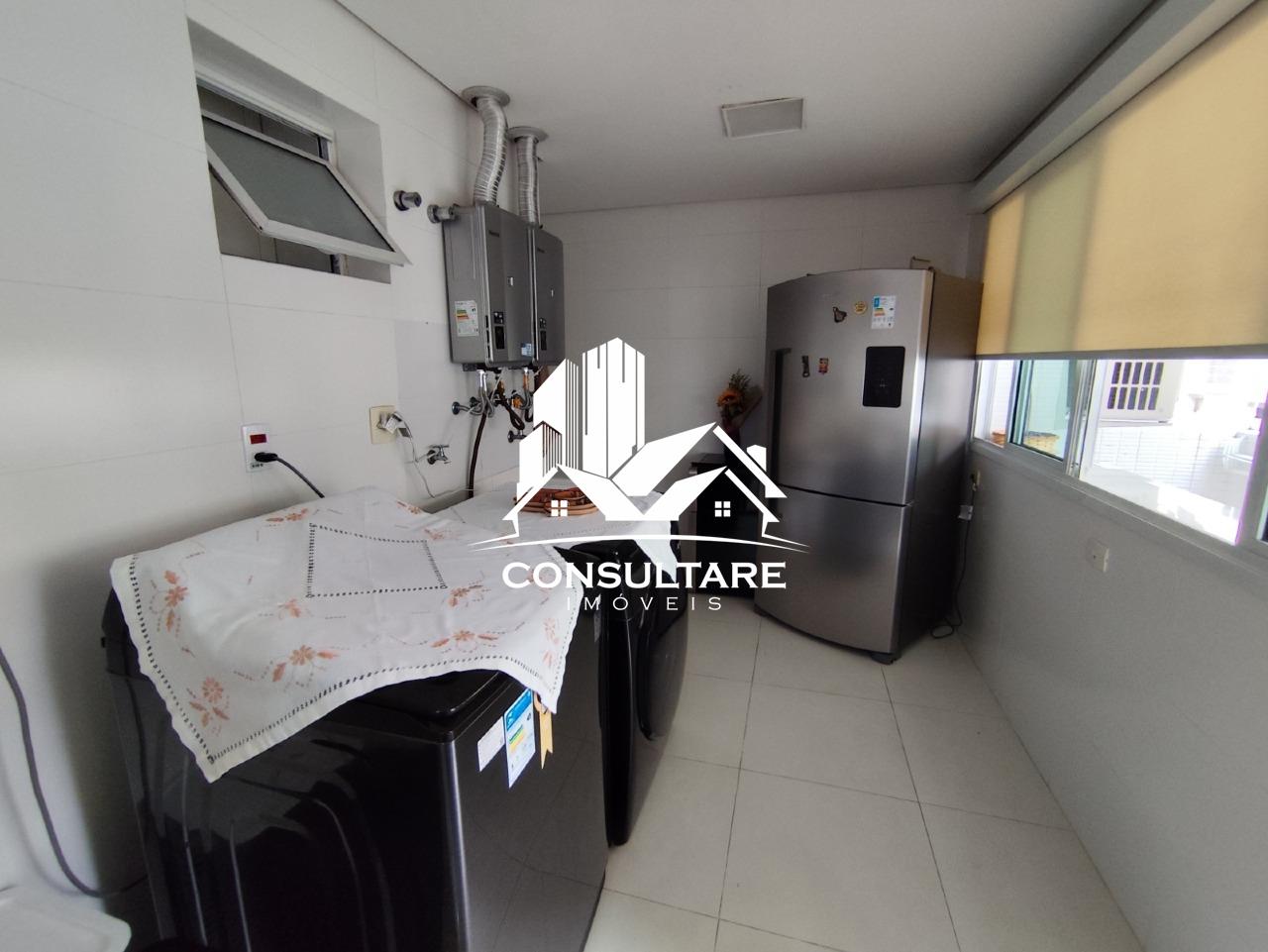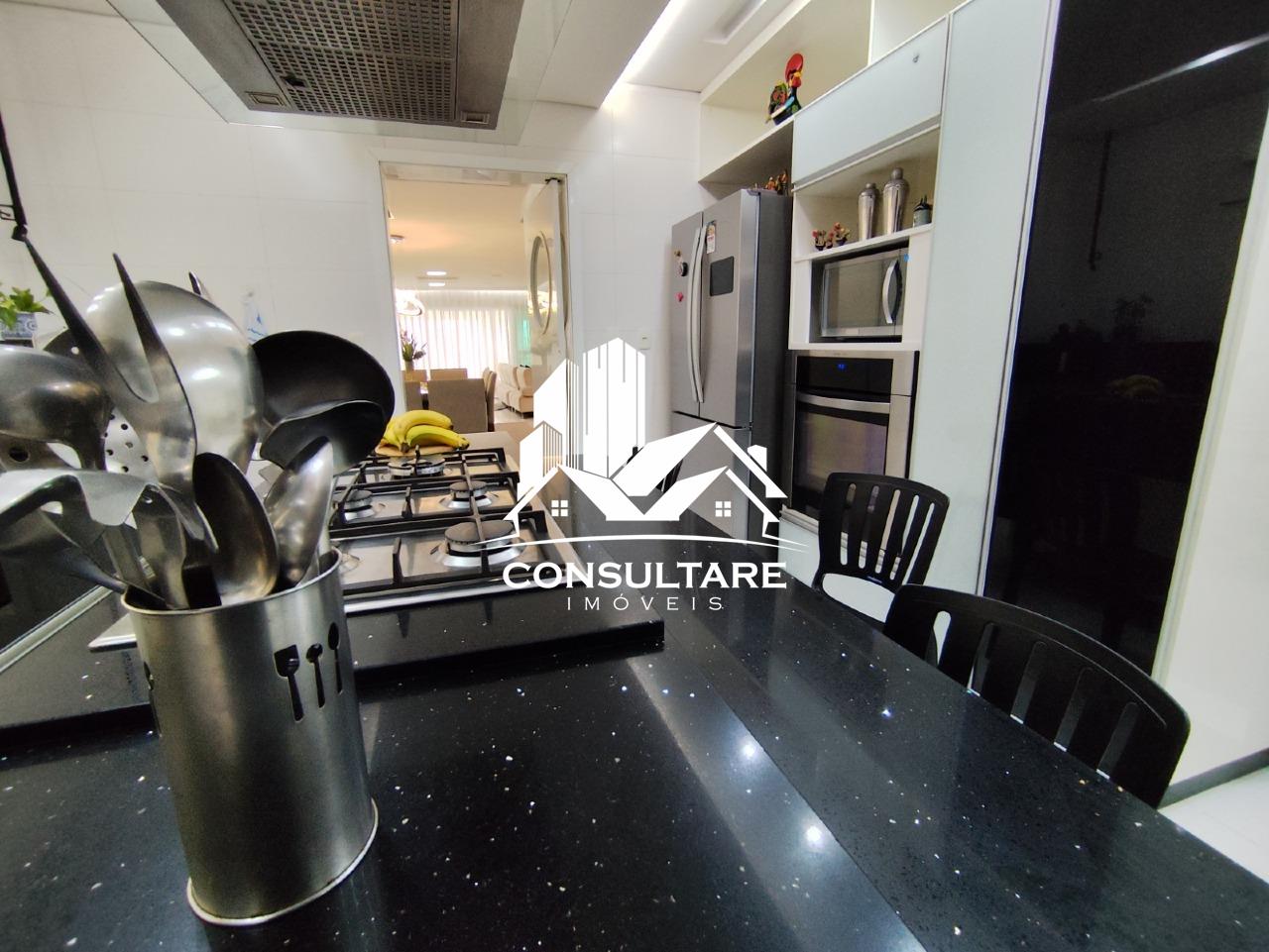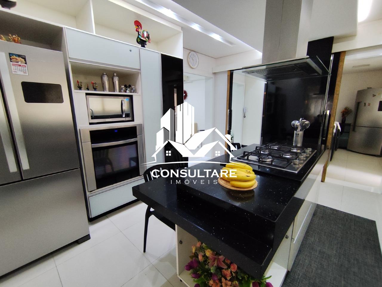 A cozinha é ampla e funcional, equipada com armários e integrada à área de serviço, além de contar com dependência completa para maior comodidade no dia a dia. O imóvel está totalmente mobiliado, pronto para morar.