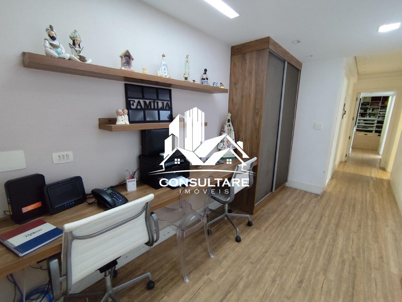 São 4 suítes espaçosas, todas com armários planejados, garantindo privacidade e conforto em cada detalhe. A suíte master conta com closet, elevando ainda mais o padrão do imóvel. Além disso, o apartamento dispõe de escritório, ideal para home office, e um total de 6 banheiros + lavabo.