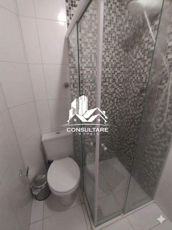 Banheiro com box de vidro temperado.