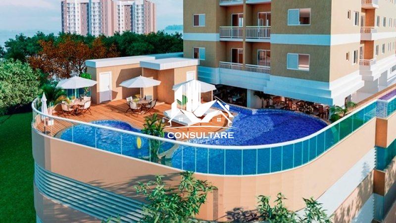 São 2 Dormitórios, andar alto, vista livre, nascente, em condomínio com lazer completo, 1 vaga de automóvel coletiva, no bairro Parque São Vicente, em São Vicente/SP.