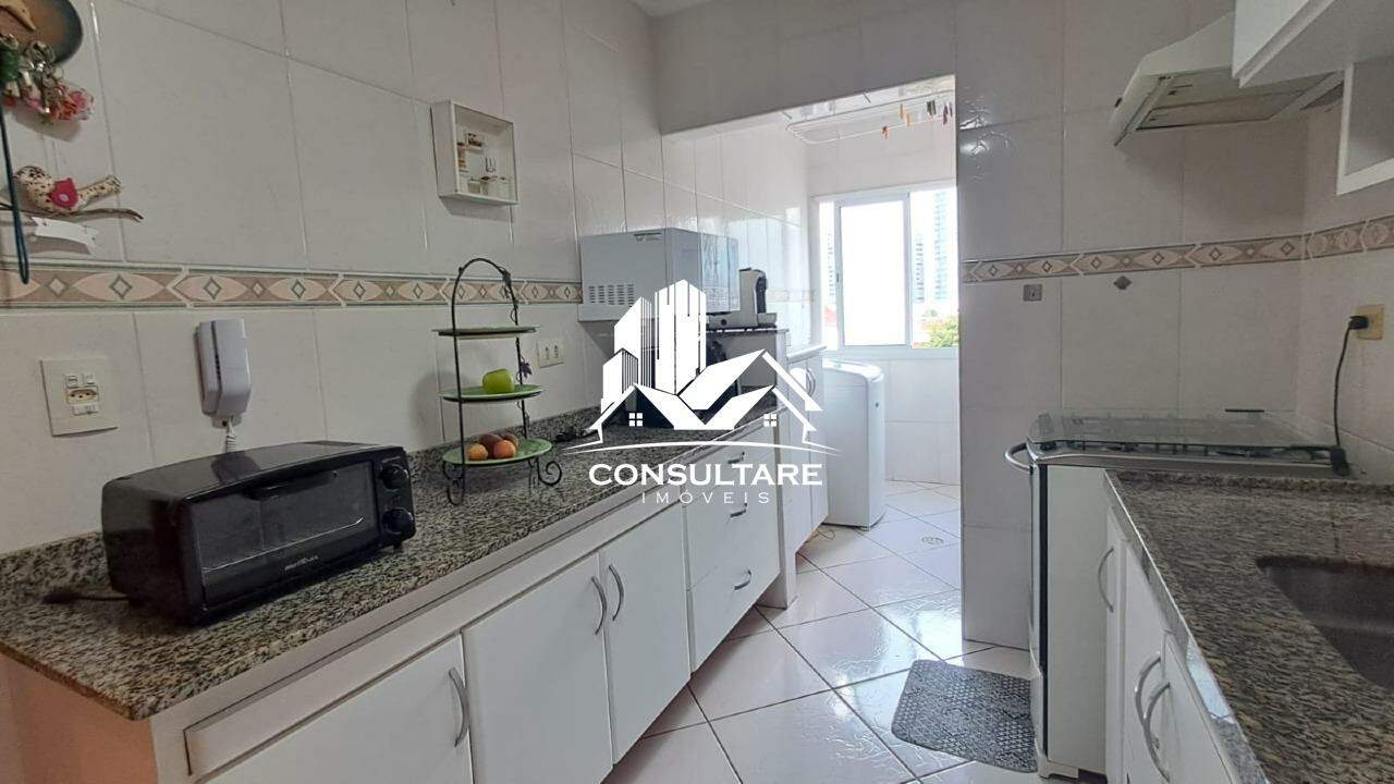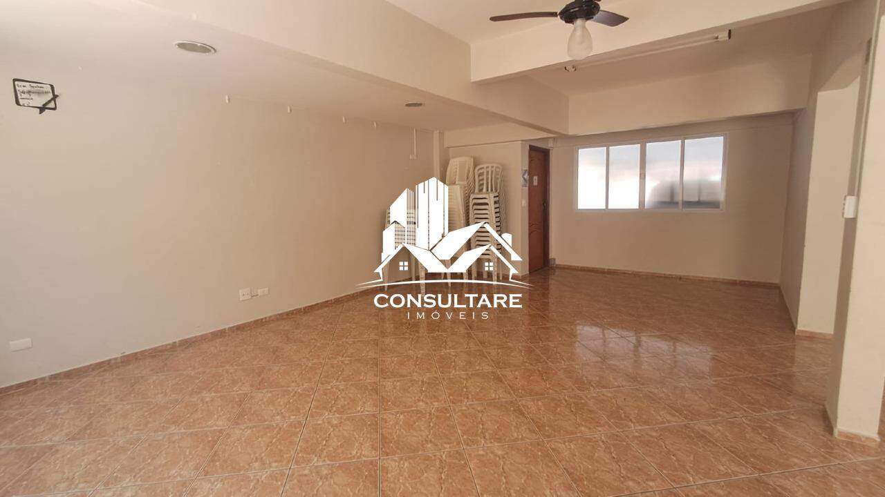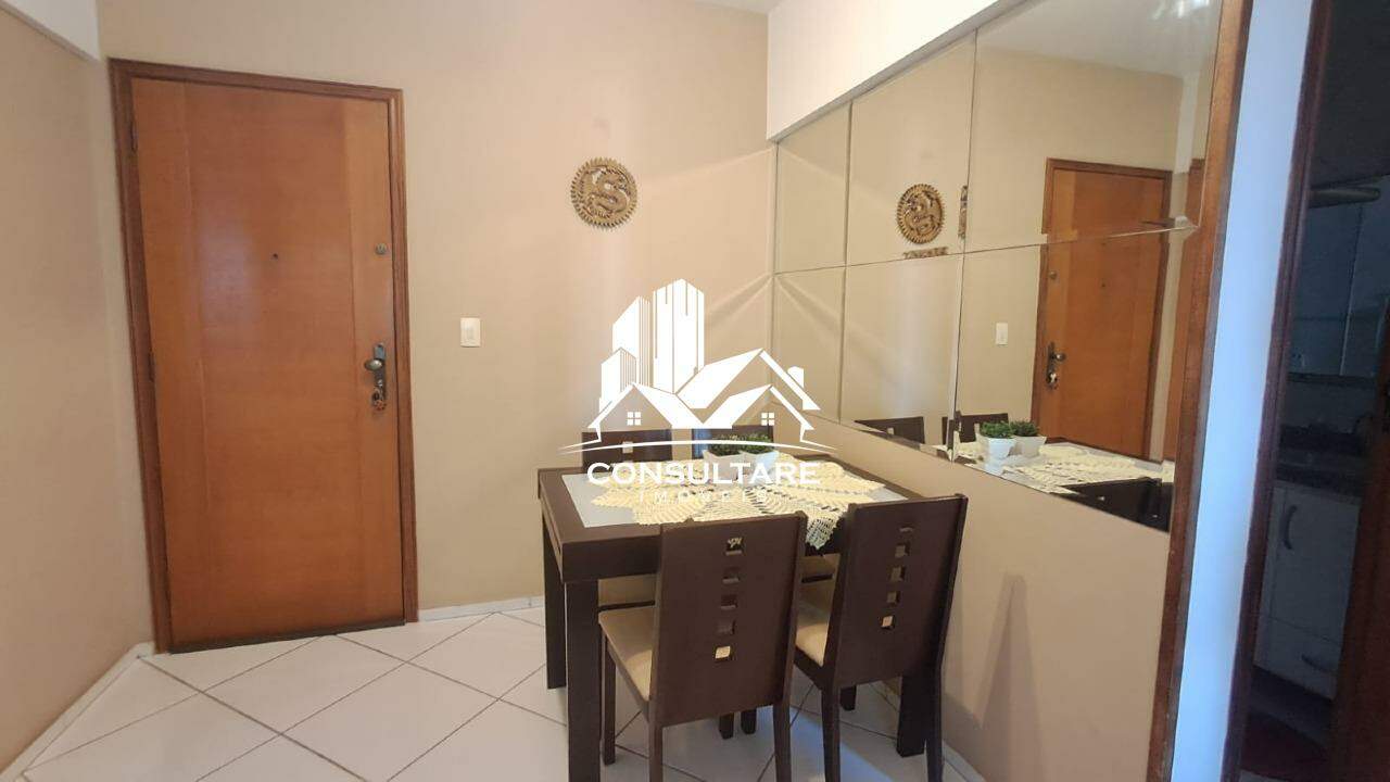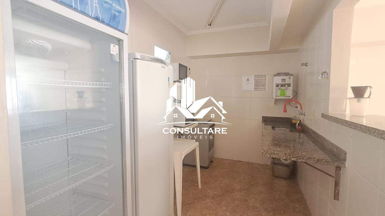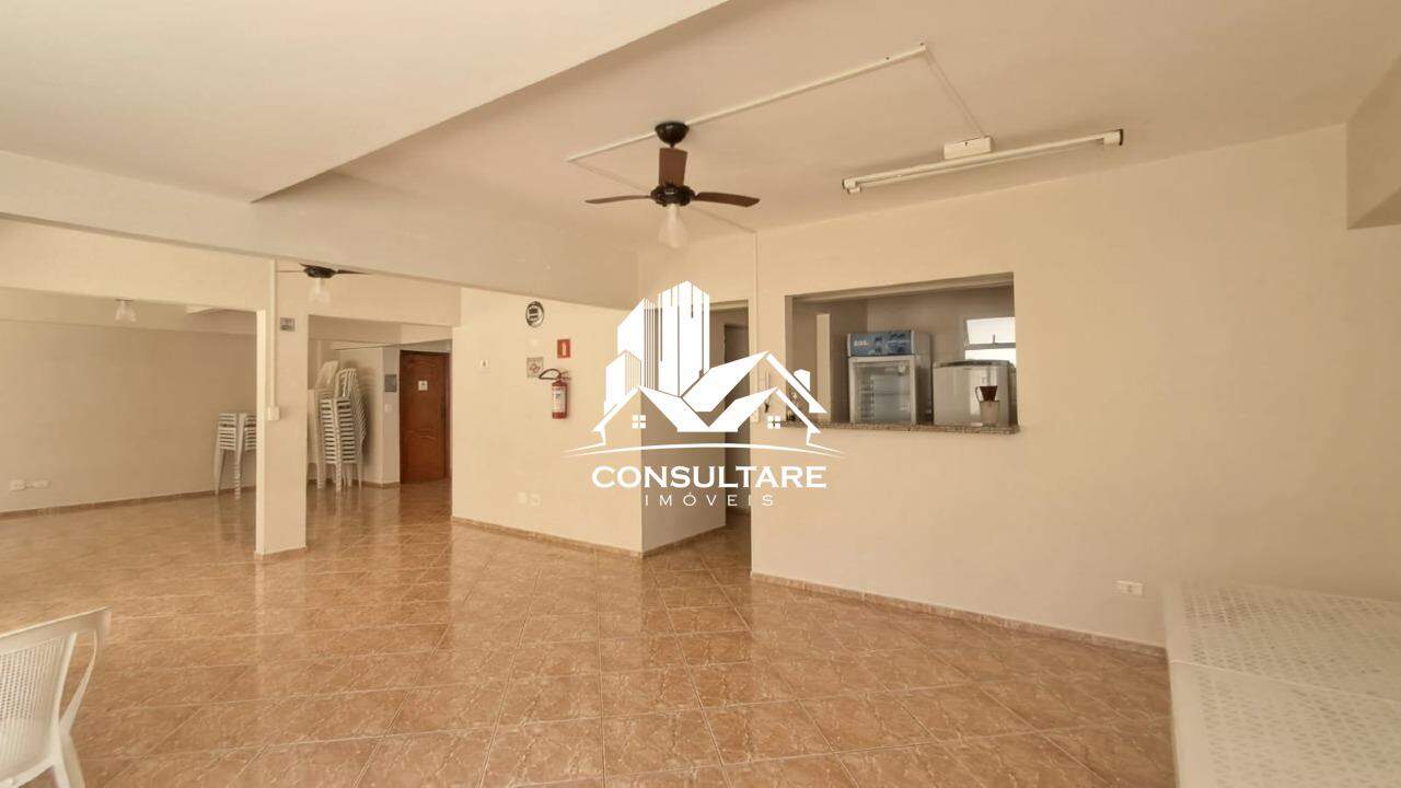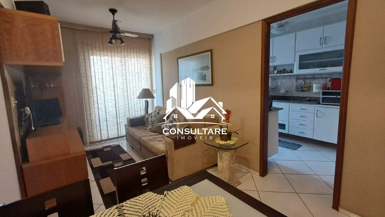 Sala 2 ambientes, 1 dormitório, banheiro social, cozinha, área de serviço e banheiro de serviço.