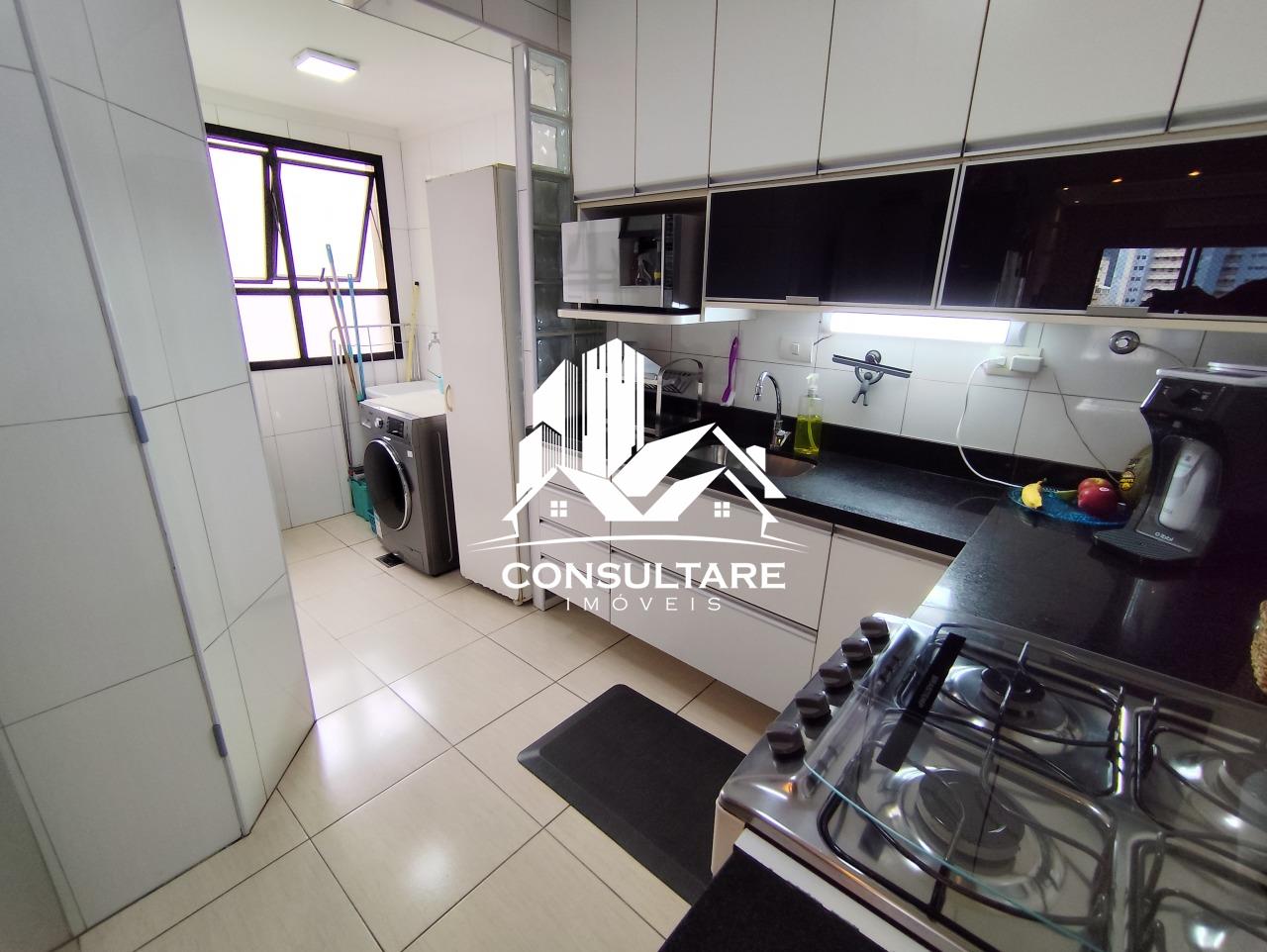 Cozinha moderna e área de serviço, ambas com armários.