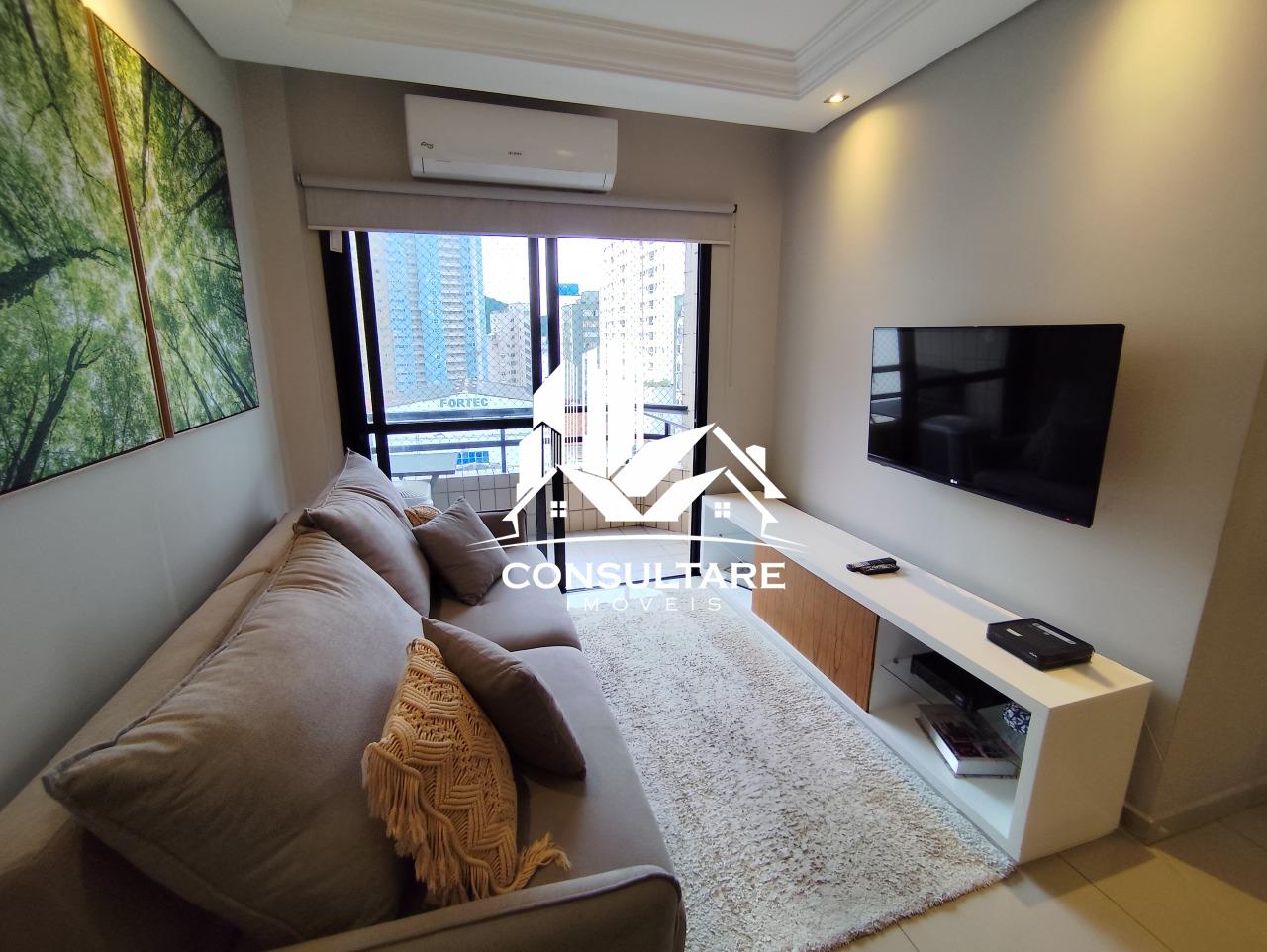 O destaque fica para a sala ampla em dois ambientes e os dormitórios, todos equipados com ar-condicionado (que permanecem no imóvel!) e sacadas com vista livre e aquele toque especial: a vista parcial para o mar.