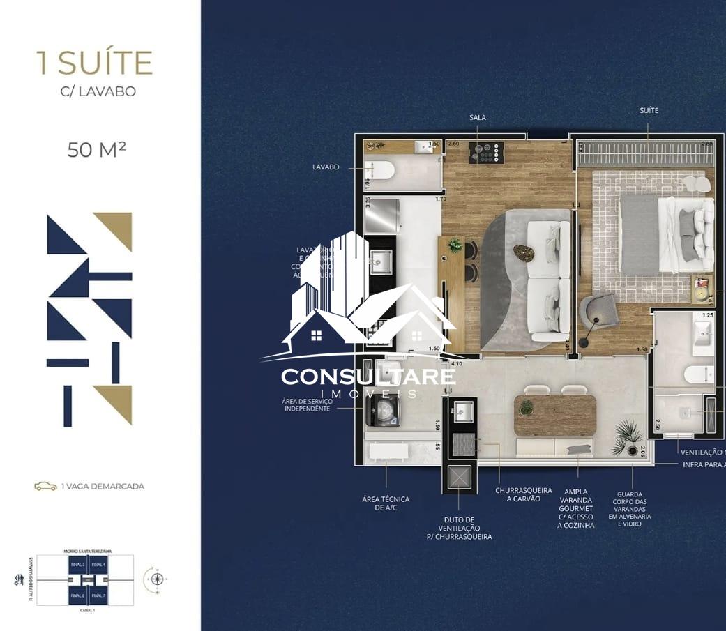Situado próximo ao Canal 1 e à Avenida Francisco Glicério, o empreendimento está a apenas 4 quadras da praia, oferecendo fácil acesso à orla e às principais avenidas da cidade. O bairro Marapé é conhecido por sua tranquilidade, infraestrutura completa e proximidade com áreas de lazer, comércio, escolas e serviços essenciais.