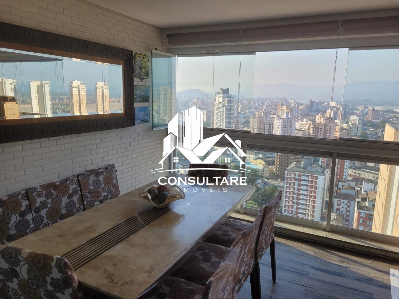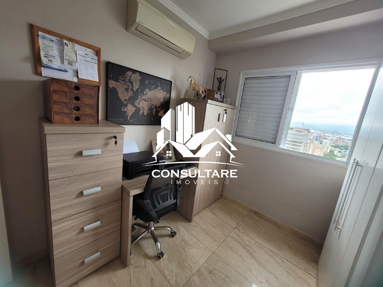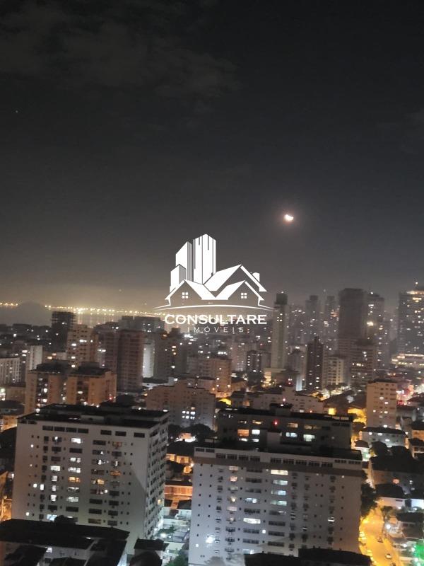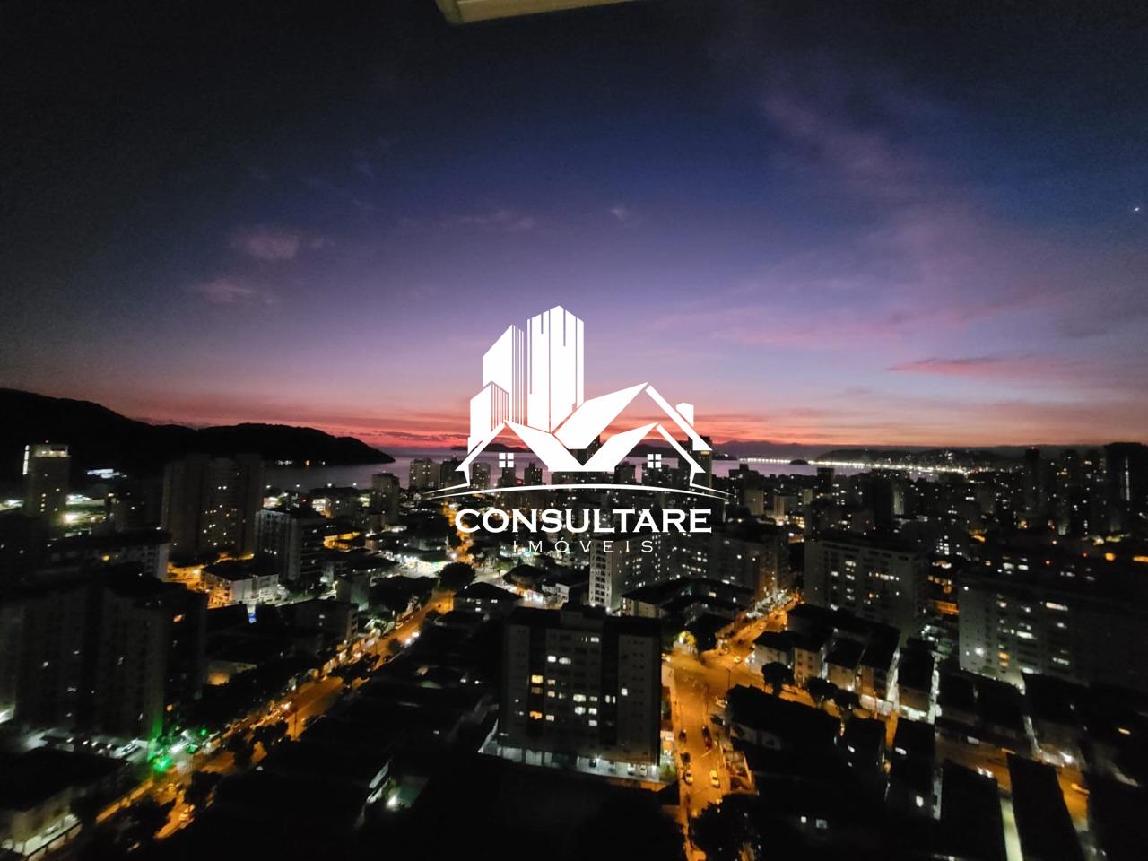 Venda de apartamento residencial em Santos, frente com vista para o mar, 78 m² internos, 2 quartos (1 suíte), 1 sala e 1 banheiro. Acabamento em porcelanato, armários na cozinha e no quarto, box no banheiro, sol pela manhã, varanda gourmet com fechamentos em vidro, água individual e gás canalizado.