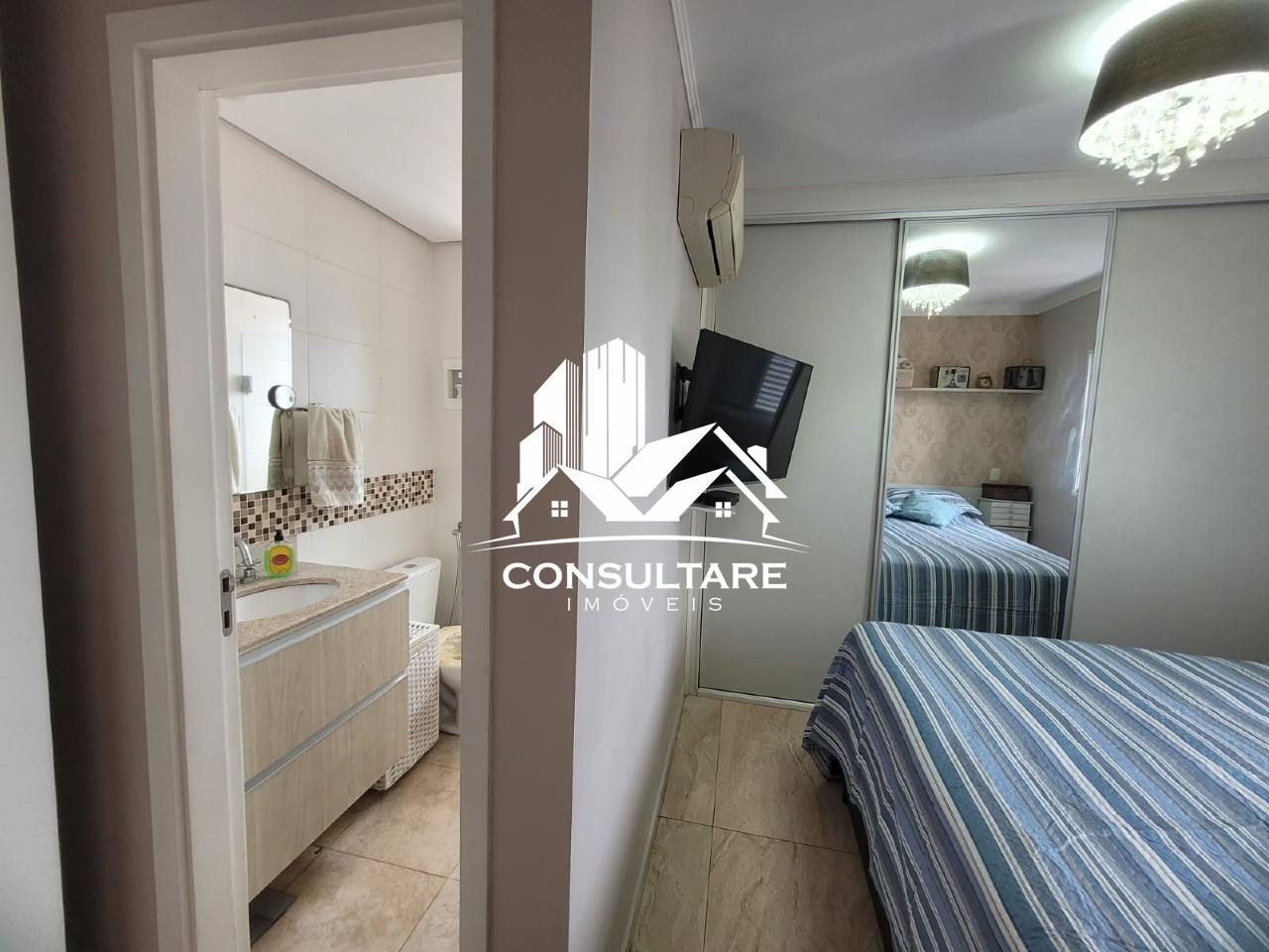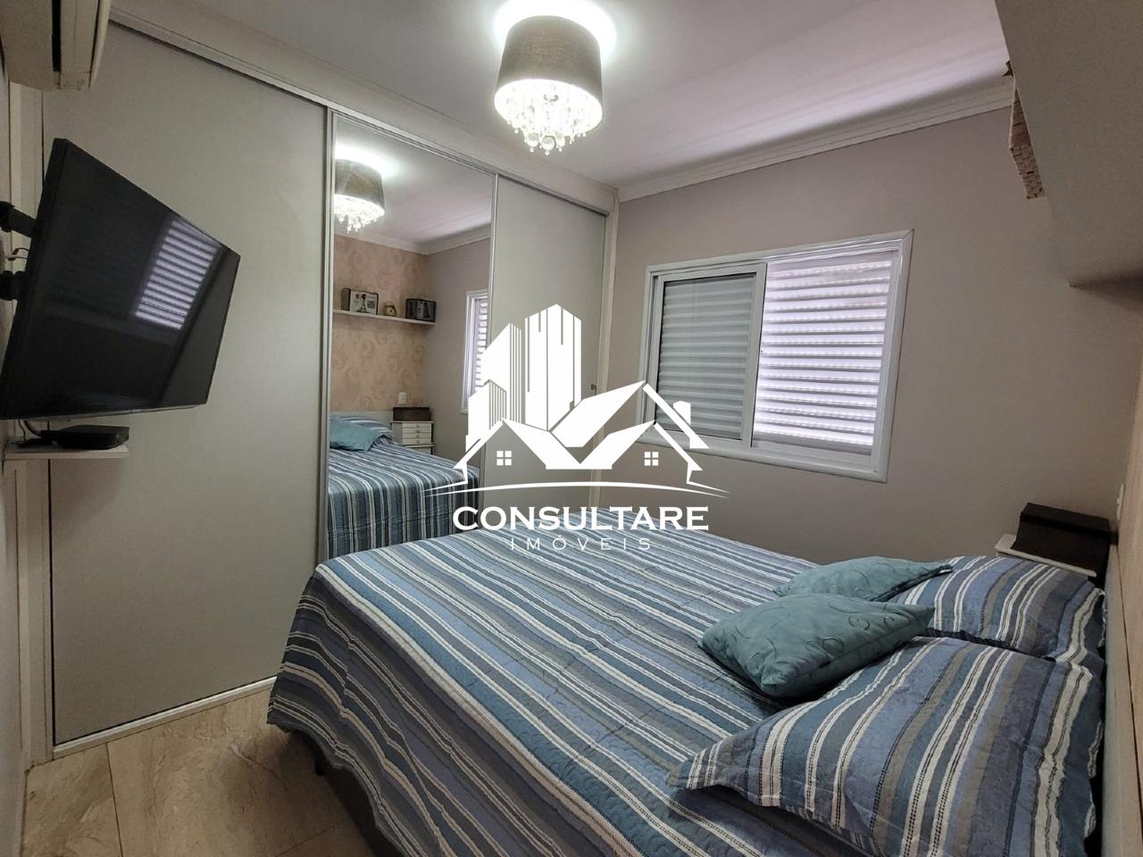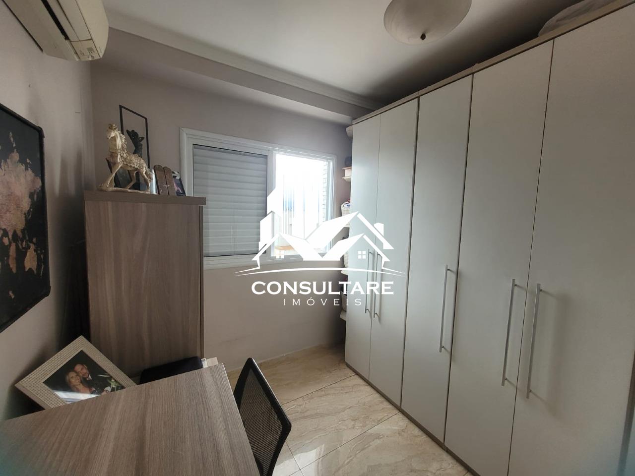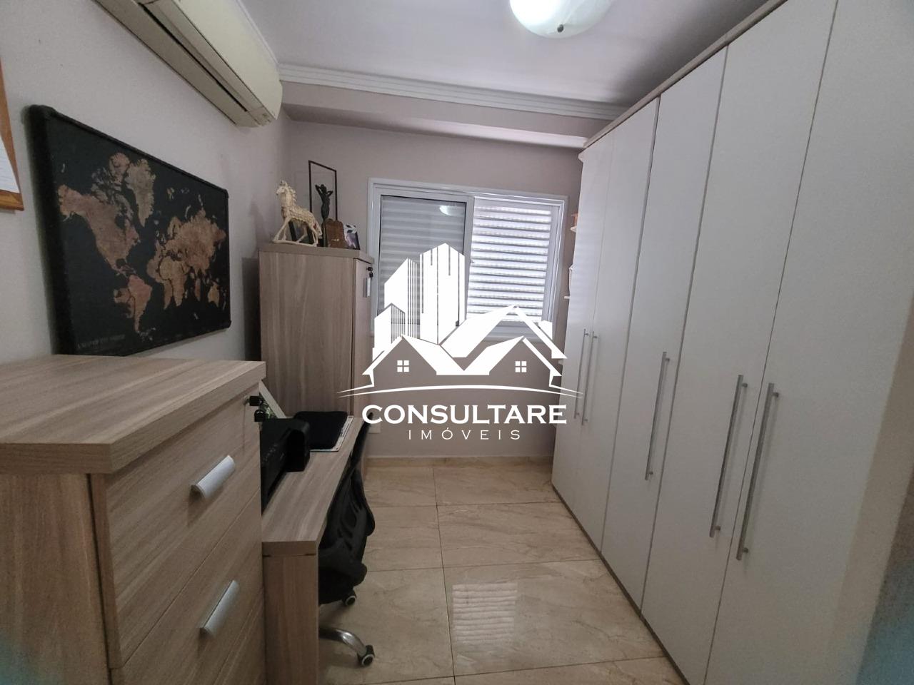 Venda de apartamento residencial em Santos, frente com vista para o mar, 78 m² internos, 2 quartos (1 suíte), 1 sala e 1 banheiro. Acabamento em porcelanato, armários na cozinha e no quarto, box no banheiro, sol pela manhã, varanda gourmet com fechamentos em vidro, água individual e gás canalizado.