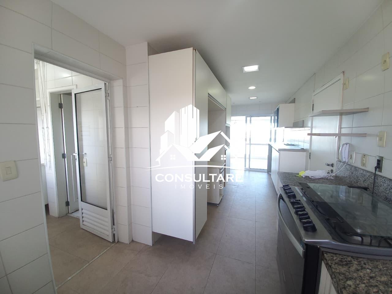 A cozinha é espaçosa, equipada com planejados e entrada independente de serviço. A lavanderia é ampla, bem ventilada, com banheiro de apoio e área técnica.