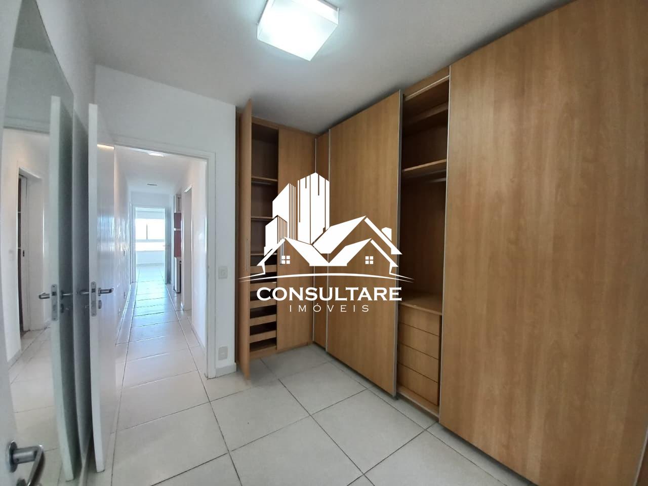 Na área íntima, o apartamento dispõe de três suítes amplas, todas com armários planejados e vista total para o mar. Conta ainda com escritório, ideal para quem precisa de um ambiente reservado para trabalho.