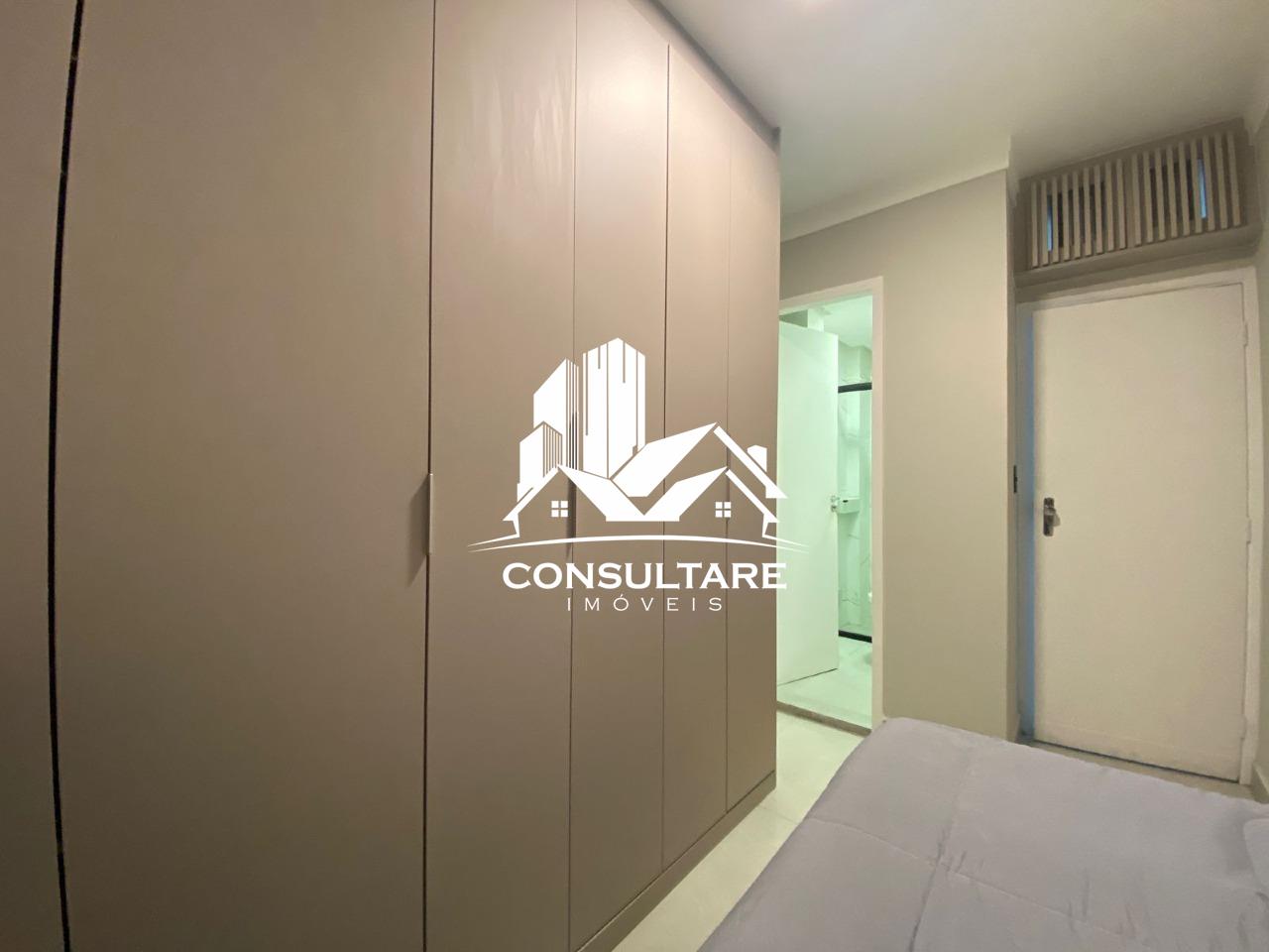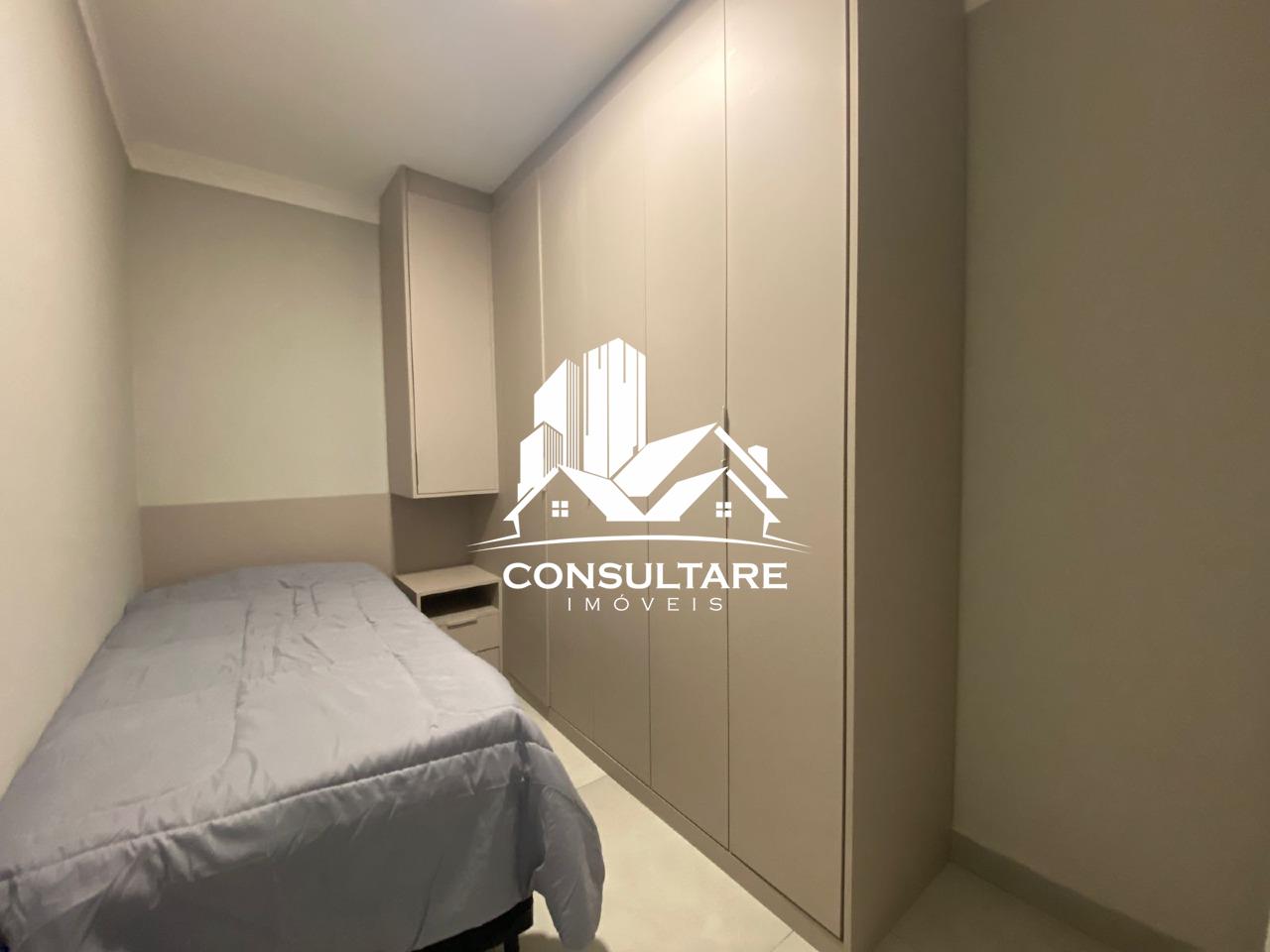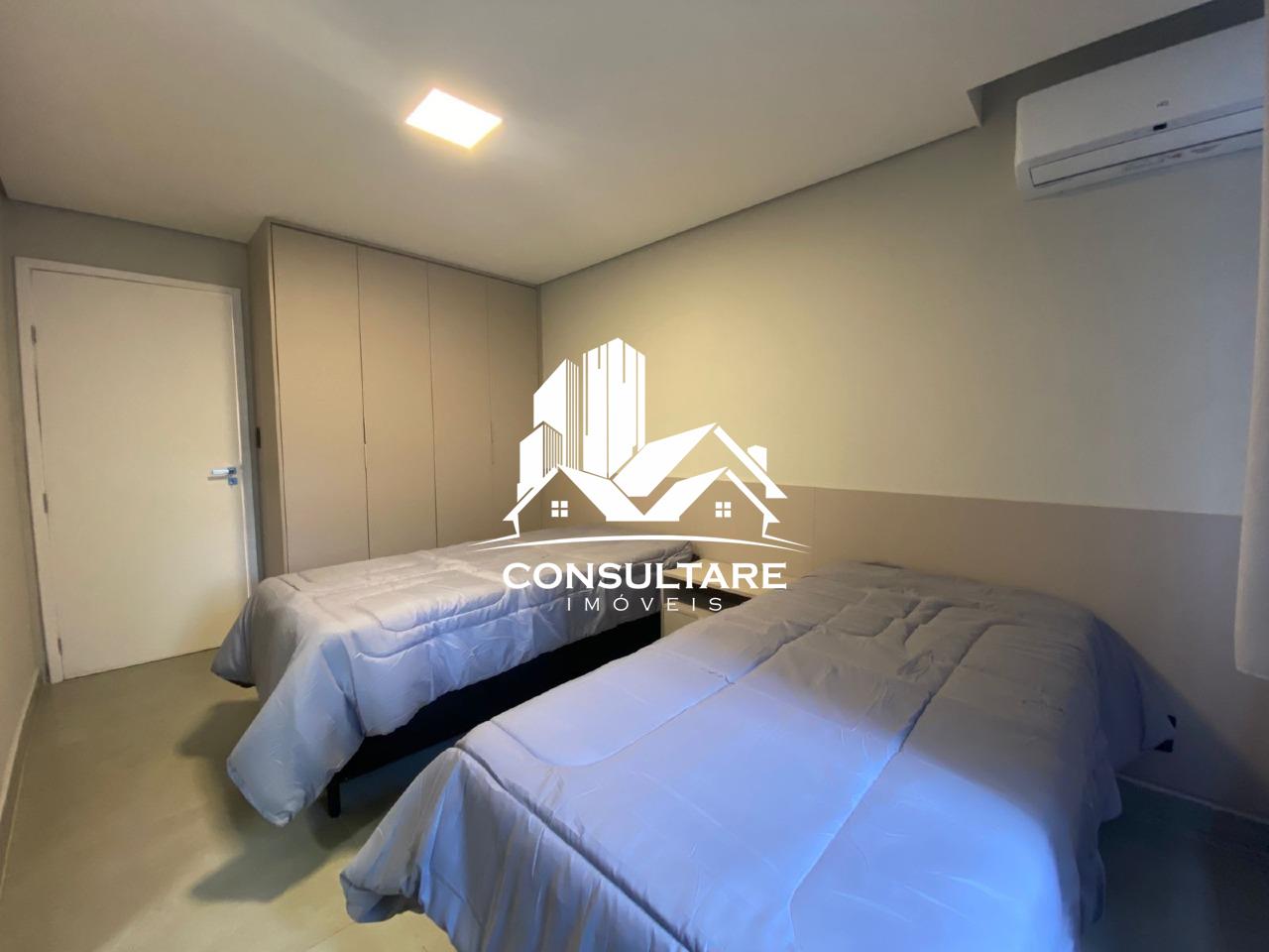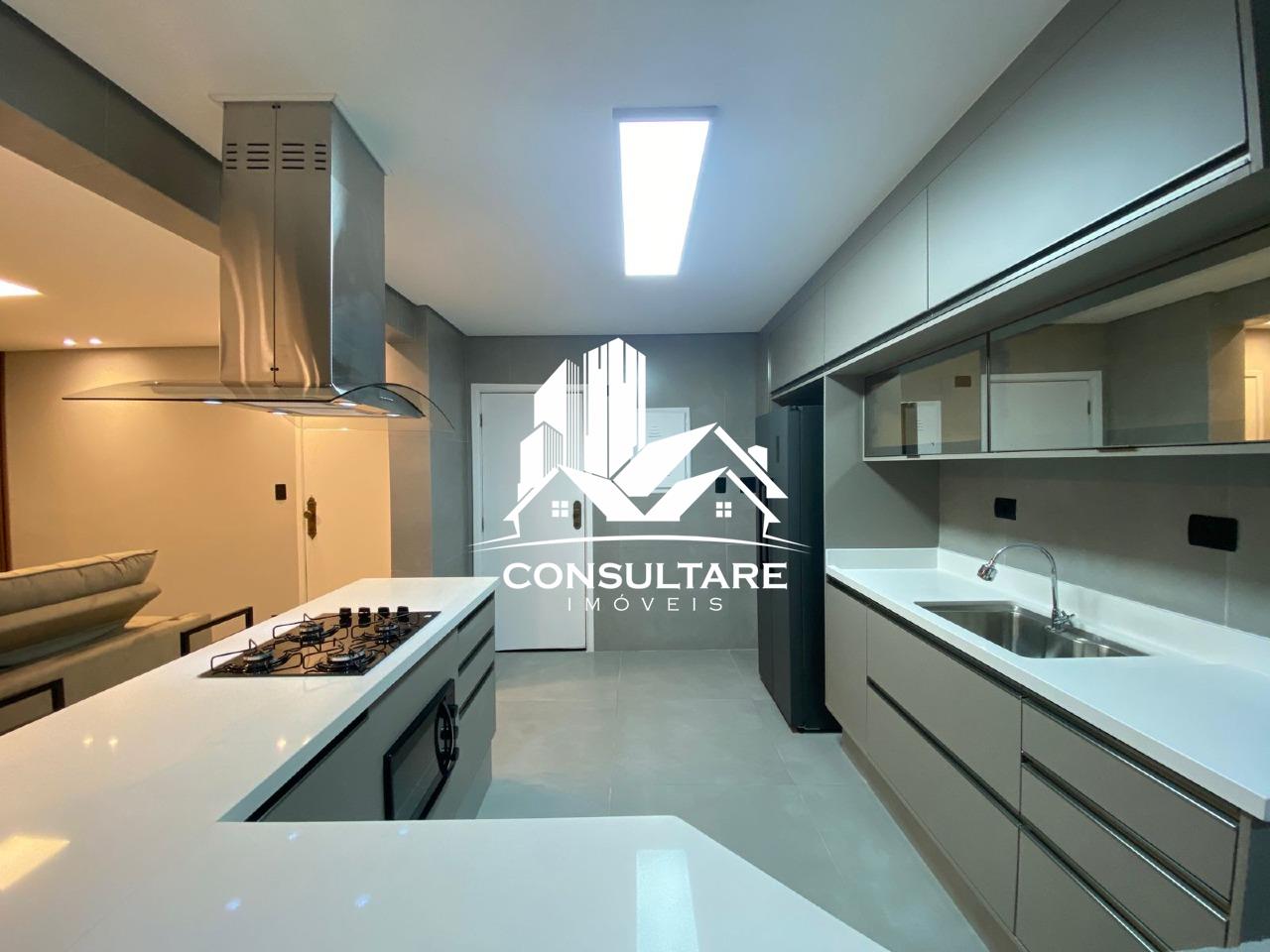 O apartamento dispõe de três suítes com armários planejados, camas, boxes e espelhos, proporcionando funcionalidade e conforto. A área social conta com sala ampla para dois ambientes integrada à cozinha americana, totalmente equipada com eletrodomésticos e mobiliário, criando um espaço moderno e acolhedor.