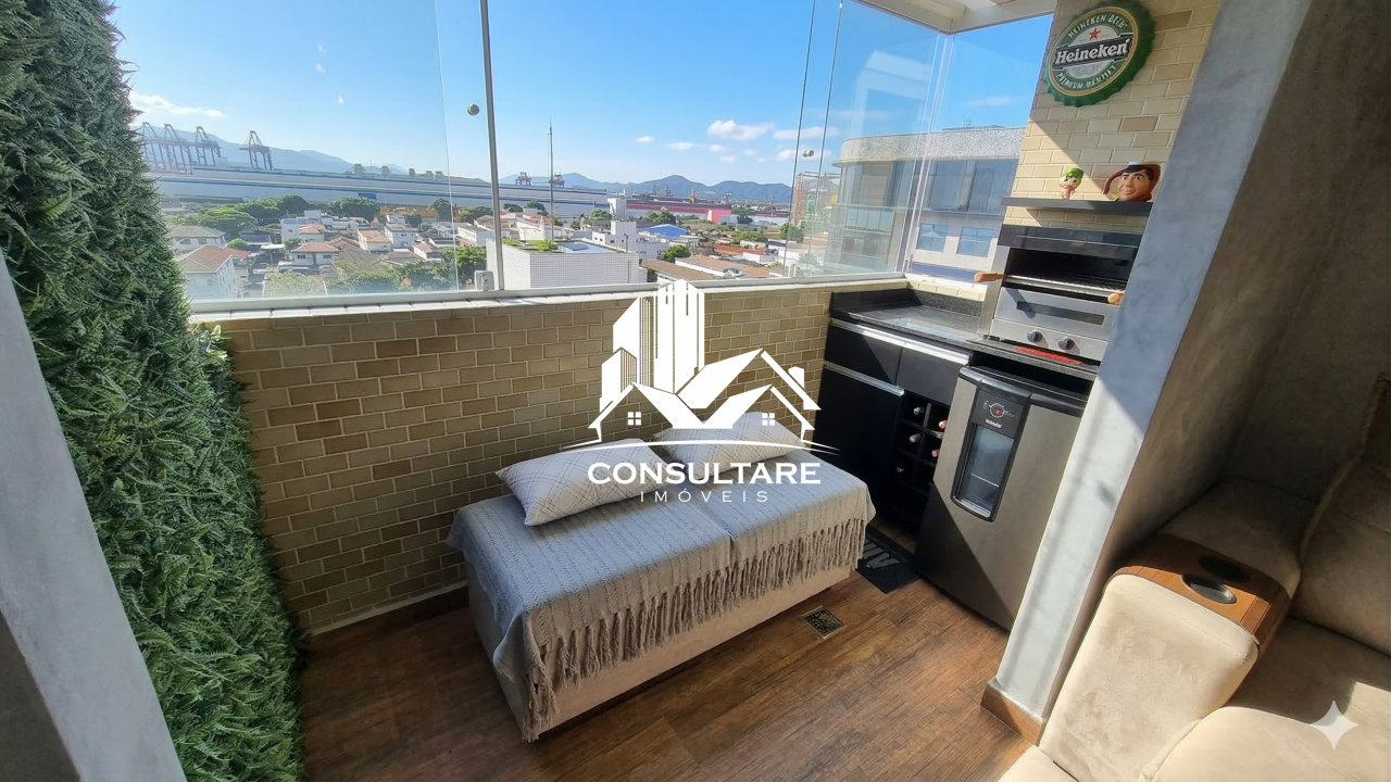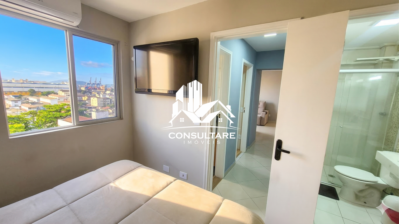 Excelente apartamento a venda de 2 dormitórios (1 suíte), andar alto, vista livre, espaço gourmet, 1 vaga demarcada, lazer, no bairro Ponta da Praia - Santos/SP
