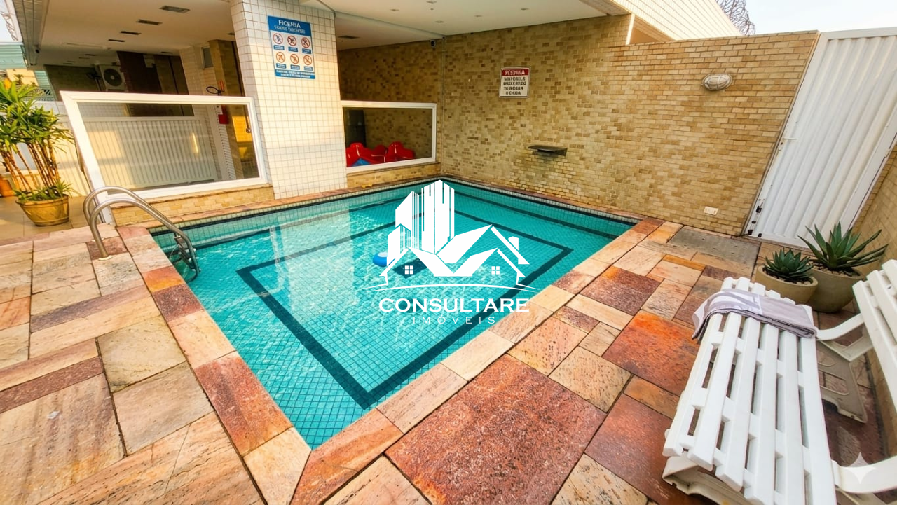Edifício com portaria 24 horas, monitoramento por CFTV, piscina, salão de festas e área com churrasqueira.