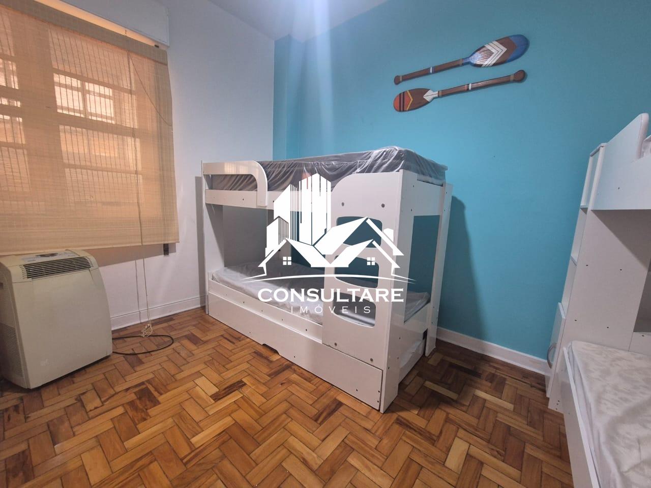 Venha conhecer esse excelente apartamento a venda de 3 dormitórios, sala com varanda, mobiliado, a 1 quadra da praia em Santos/SP, sem garagem. Serve tanto para quer residir ou investir em locação temporária (Airbnb)