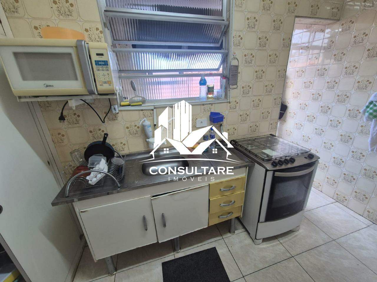 Apartamento a venda de 2 dormitórios, de frente, segundo andar, amplo e arejado, em prédio de 3 andares, com 1 vaga coletiva, no bairro Marapé em Santos/SP.
