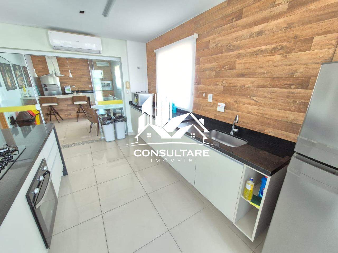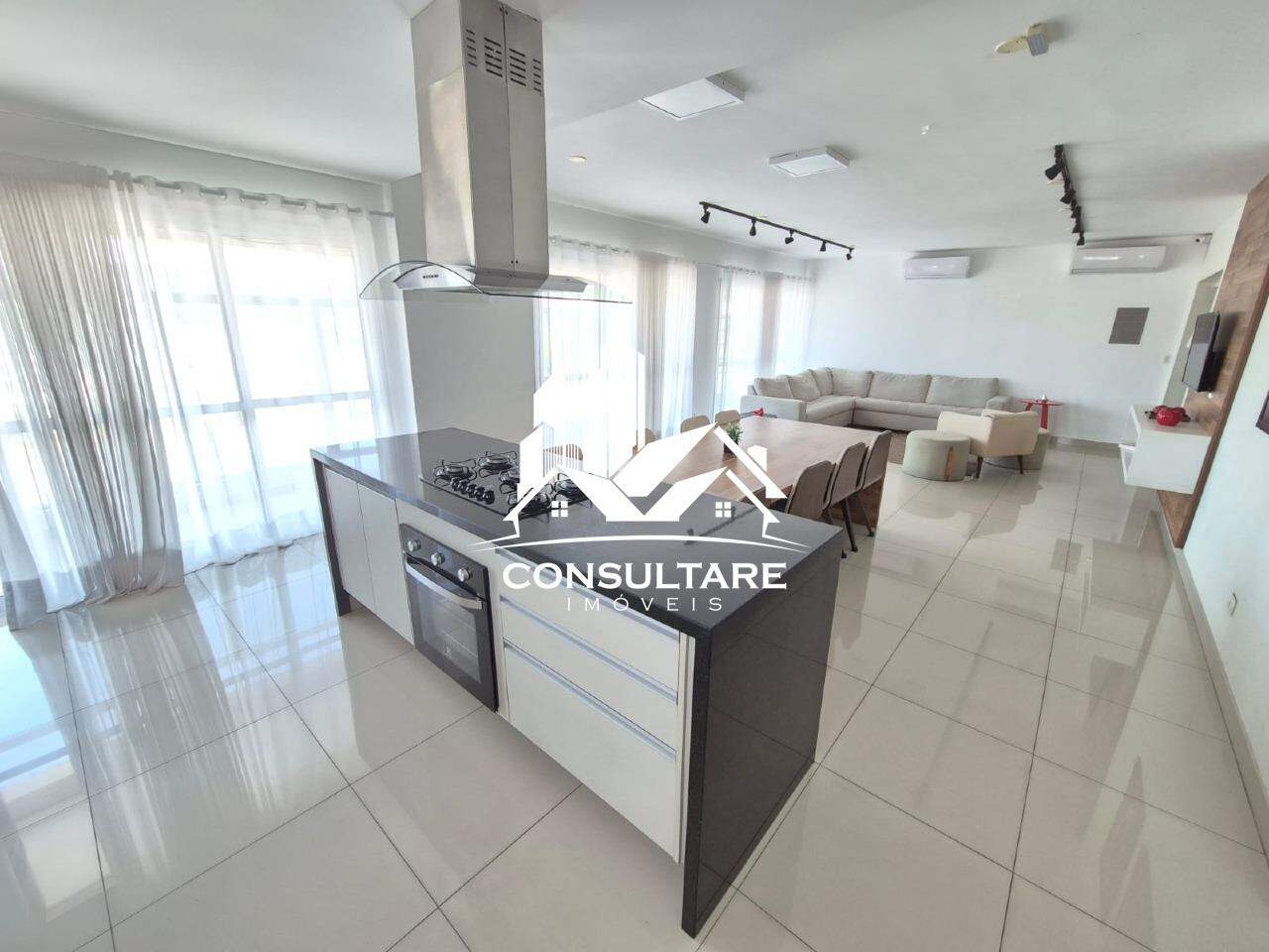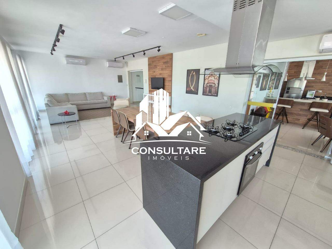 Cozinha tipo americana, planejada com cooktop.