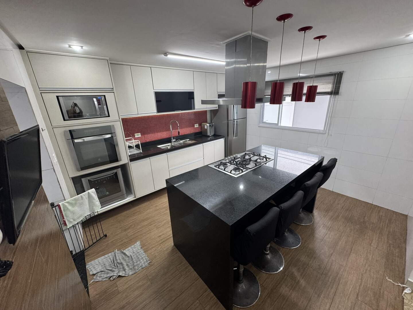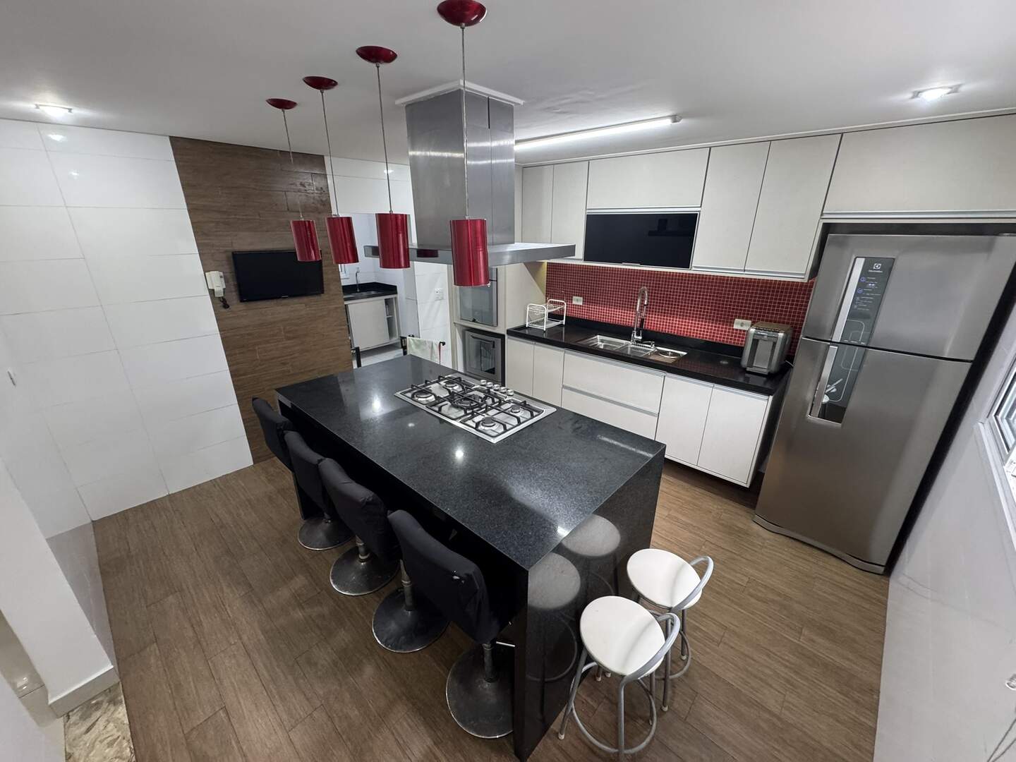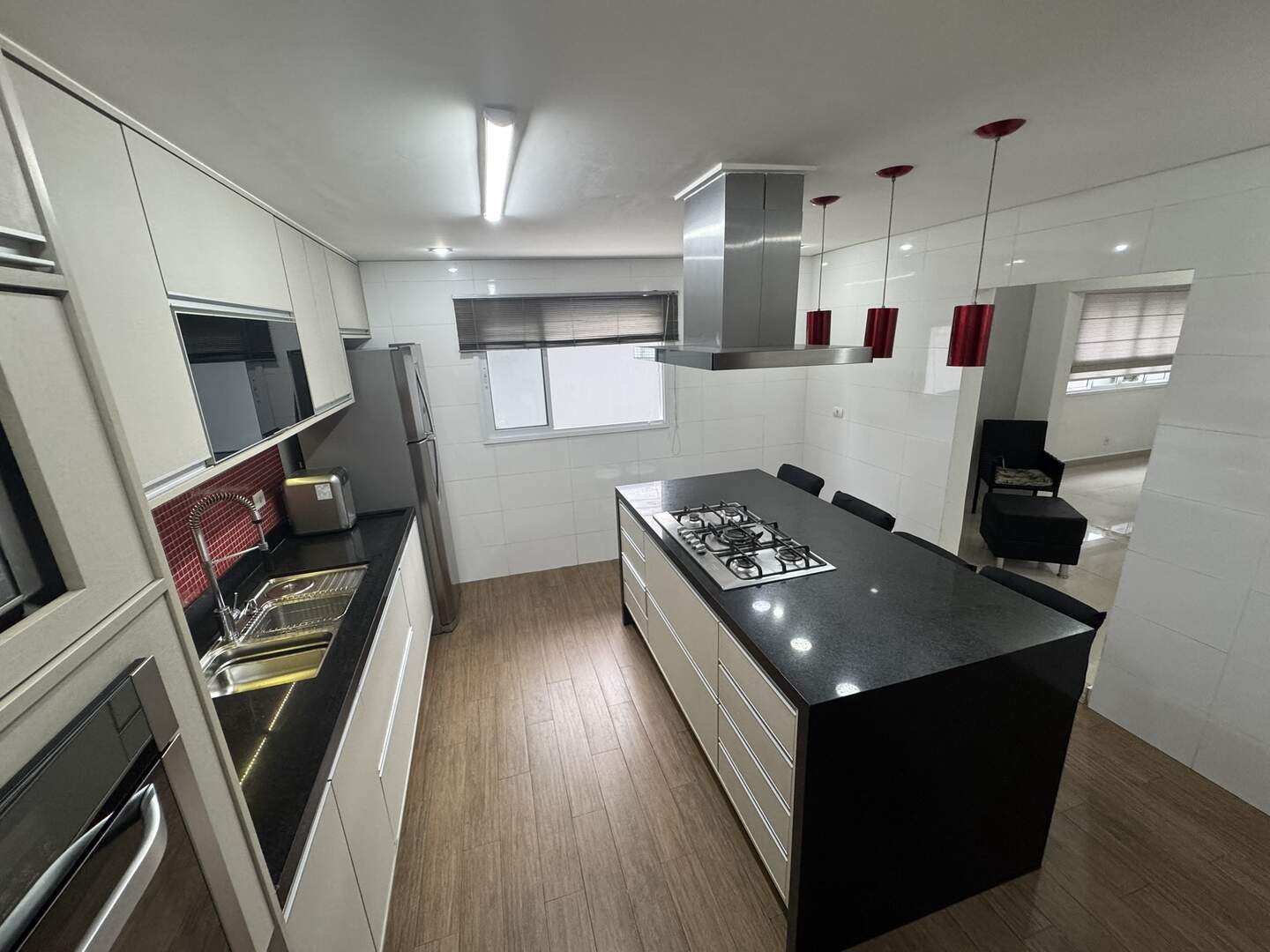 Cooktop, forno elétrico, lava-louças, exaustor, micro-ondas, geladeira e filtro de água.
