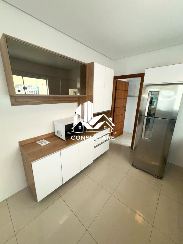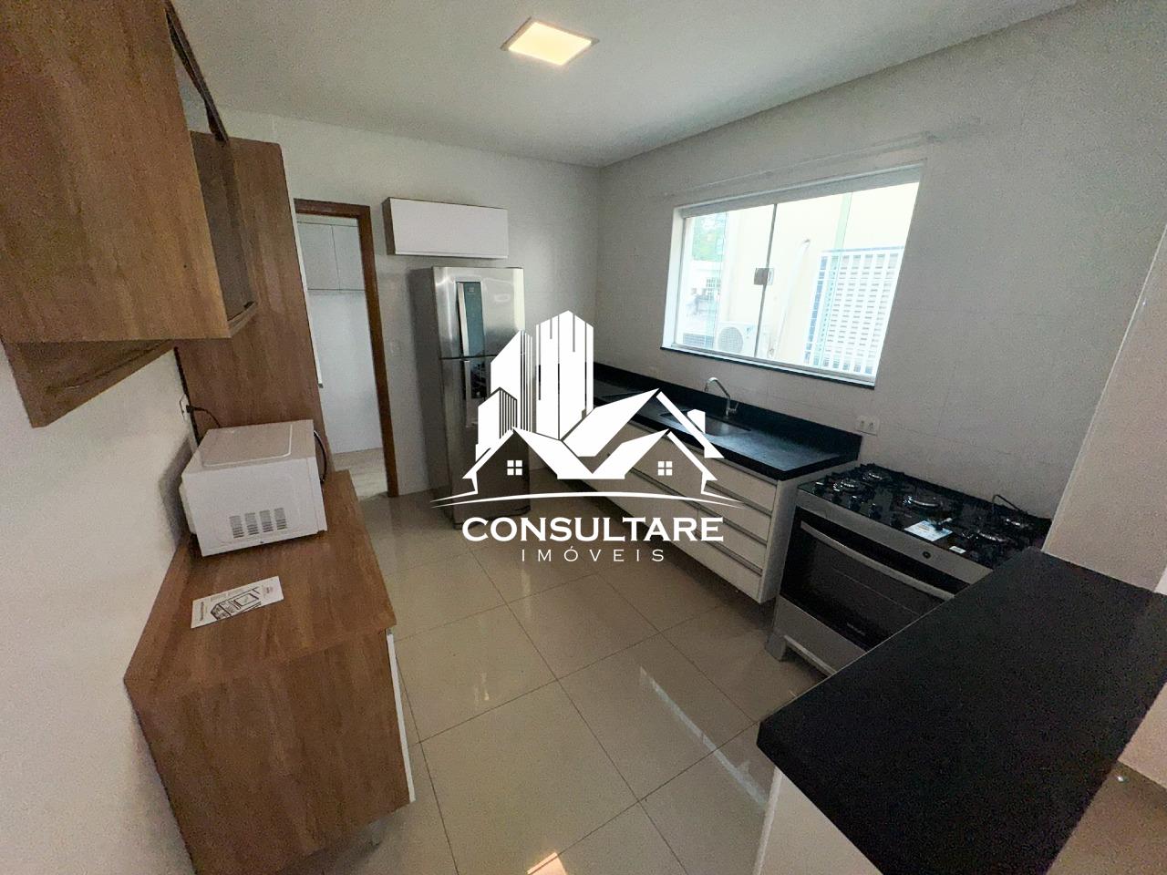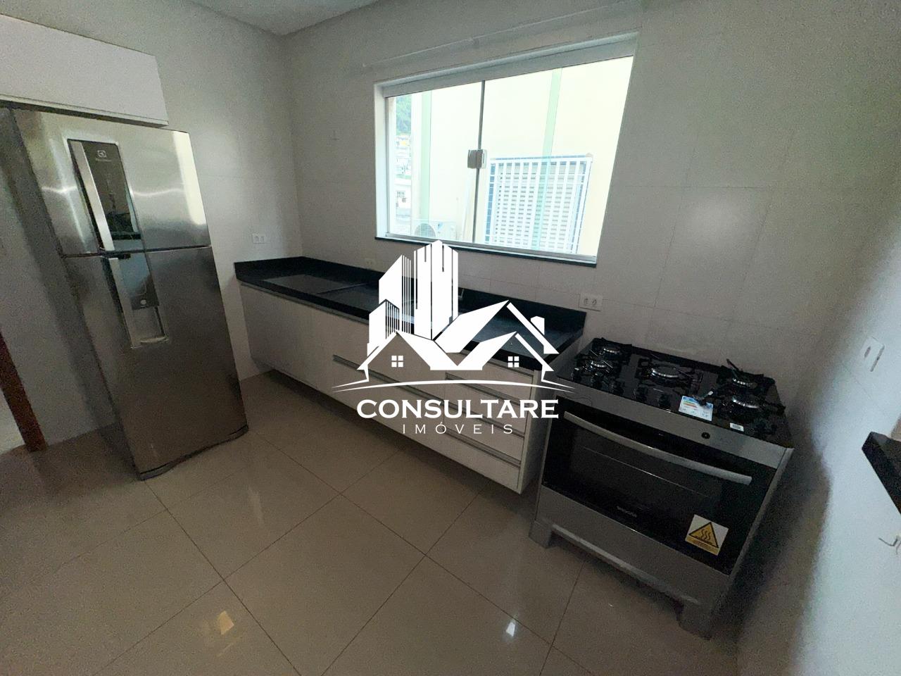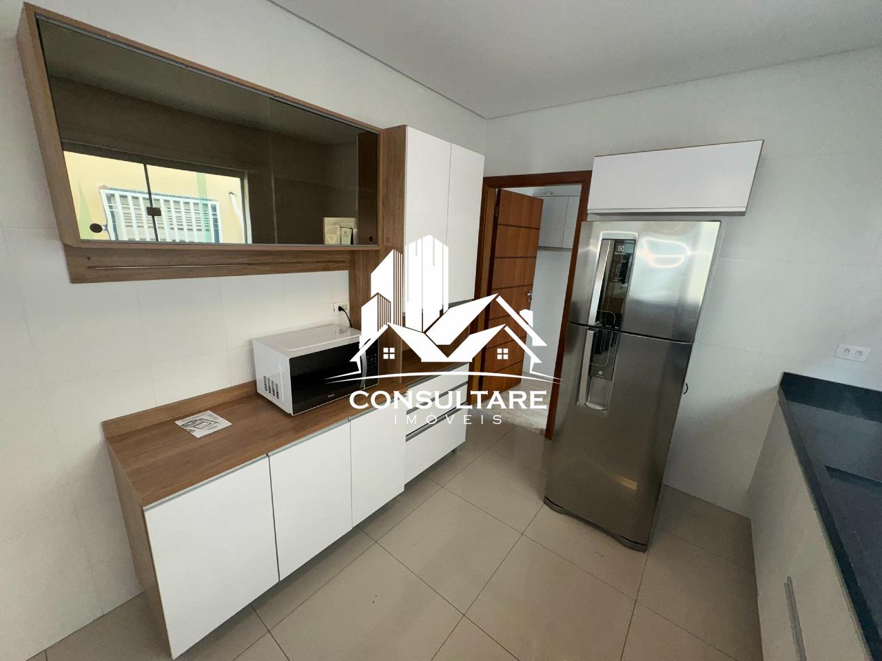 Cozinha: armários planejados, geladeira, micro-ondas e fogão