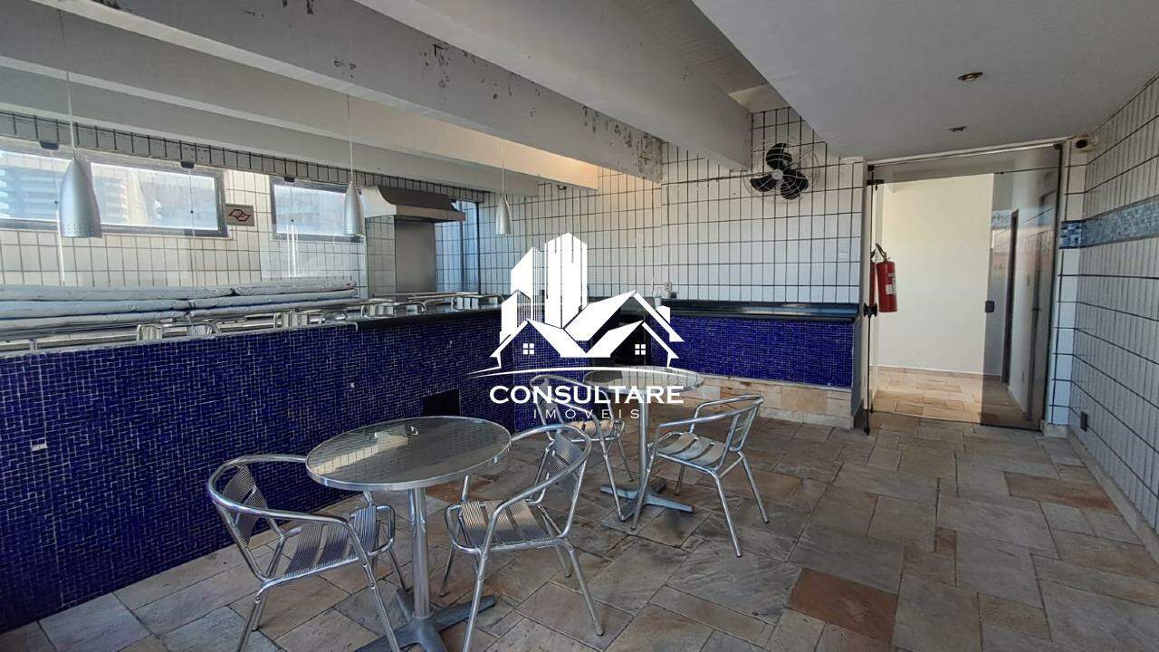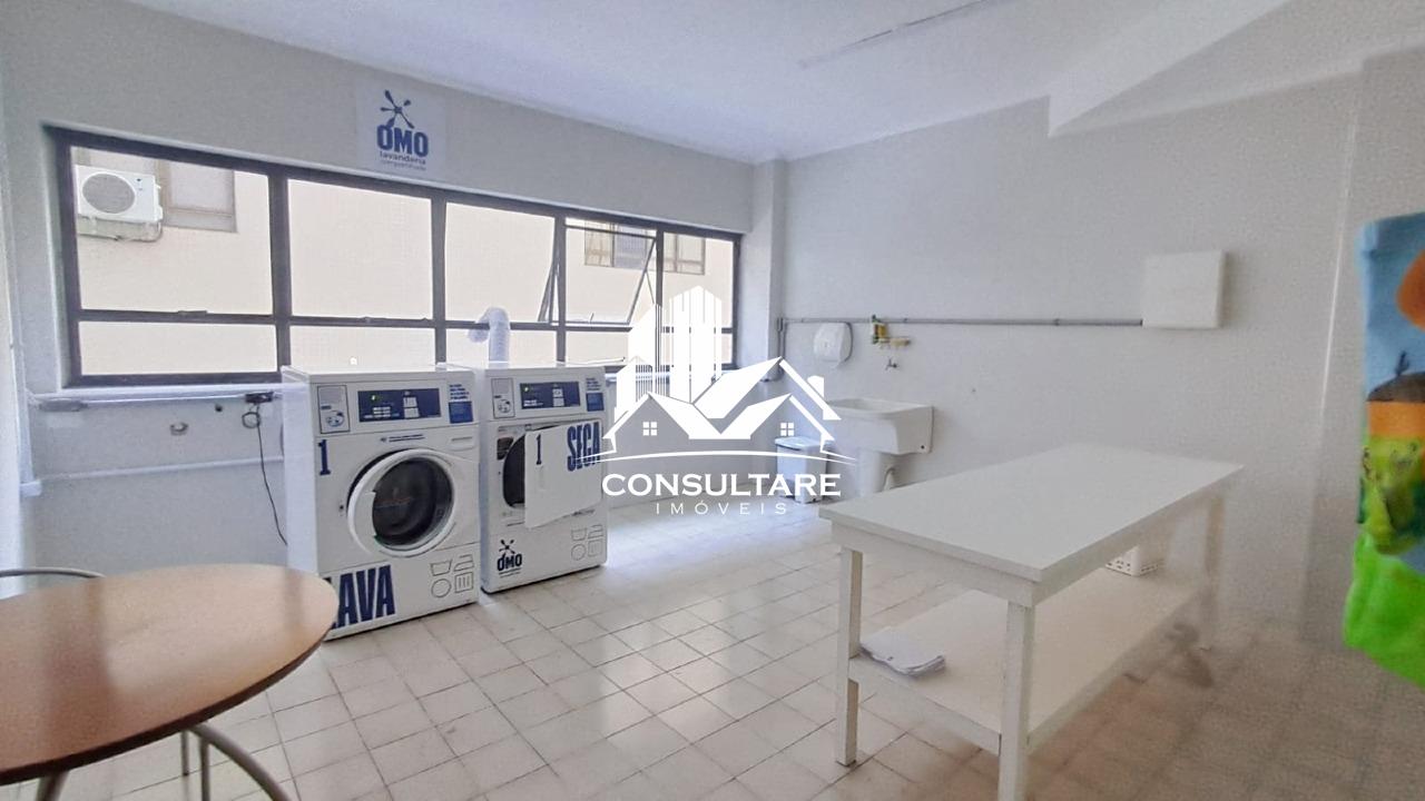 Edifício frente mar, com portaria 24hrs presencial, lazer com piscina, sauna e bar na cobertura, academia, salão de festas, lavanderia.