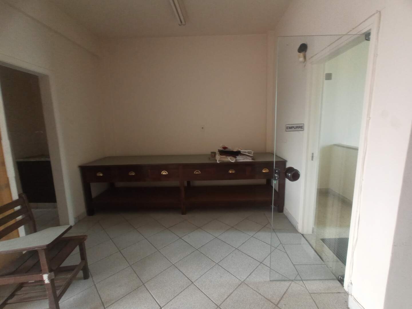 O imóvel possui três pavimentos bem distribuídos. No térreo, conta com salão principal com balcão de atendimento, dois banheiros, salão nos fundos com mezanino e mais dois banheiros, cozinha ampla que pode ser utilizada como refeitório ou copa, duas salas de depósito e quintal com espaço para carga e descarga.