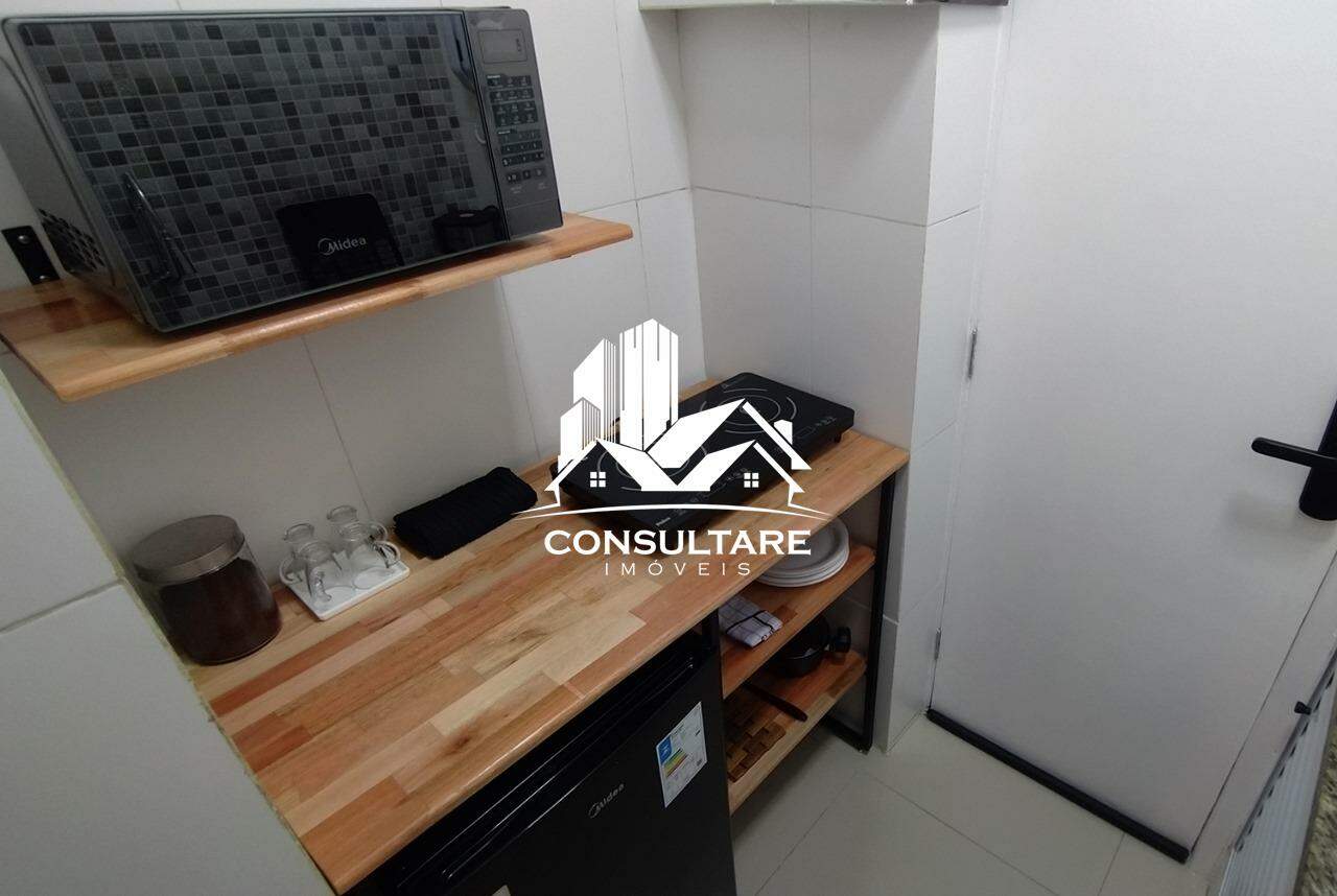- Cozinha equipada com fogão, micro-ondas e utensílios básicos