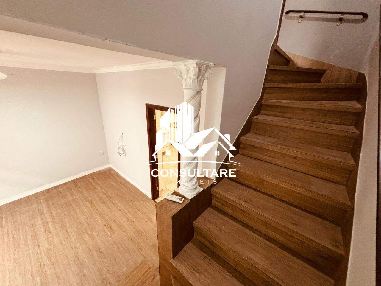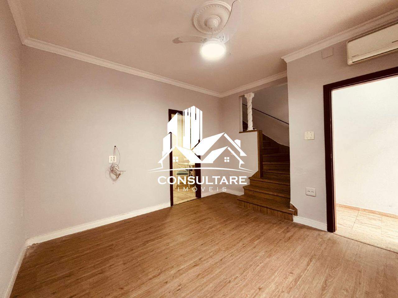 No piso superior, são 2 dormitórios (um deles com armários planejados) e banheiro social. O imóvel possui ar-condicionado na sala e nos quartos, garantindo conforto em todas as estações.