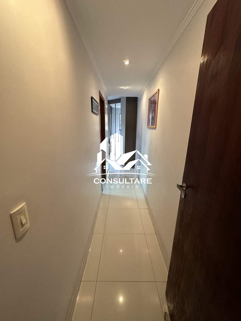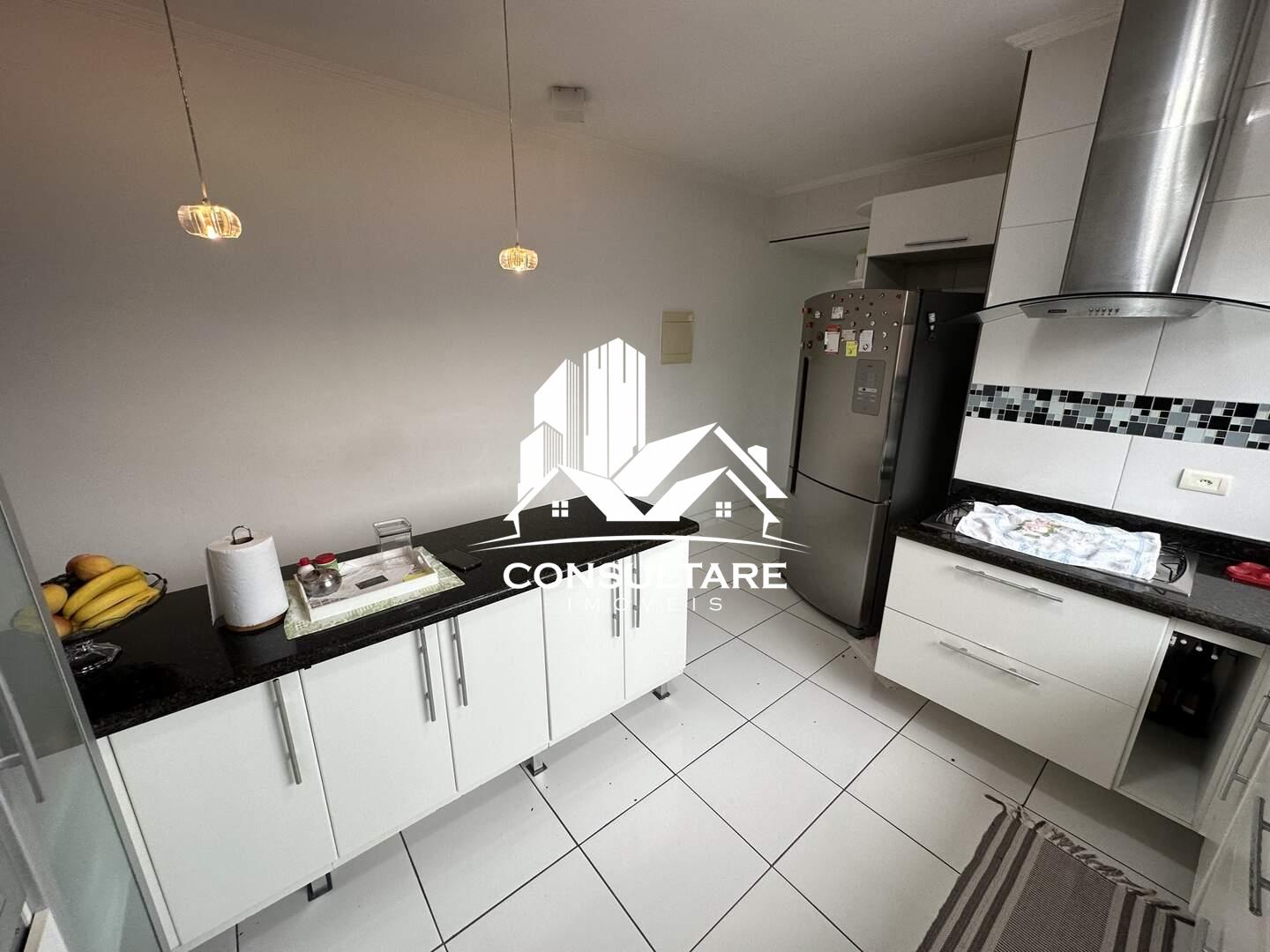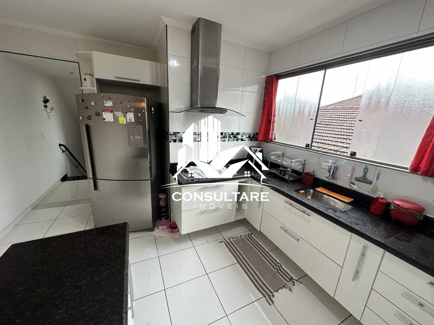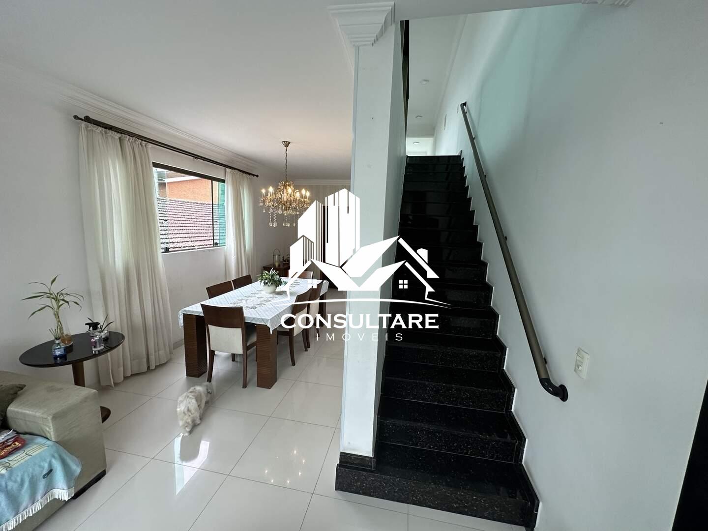 No primeiro pavimento, dispõe de sala de estar com sacada, sala de jantar, lavabo, cozinha com armários planejados, área de serviço, três dormitórios, sendo uma suíte, além de banheiro social.