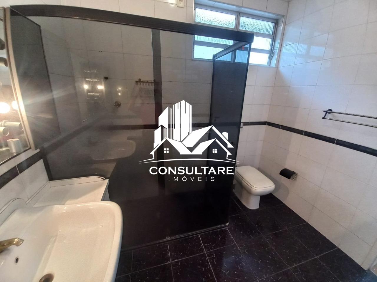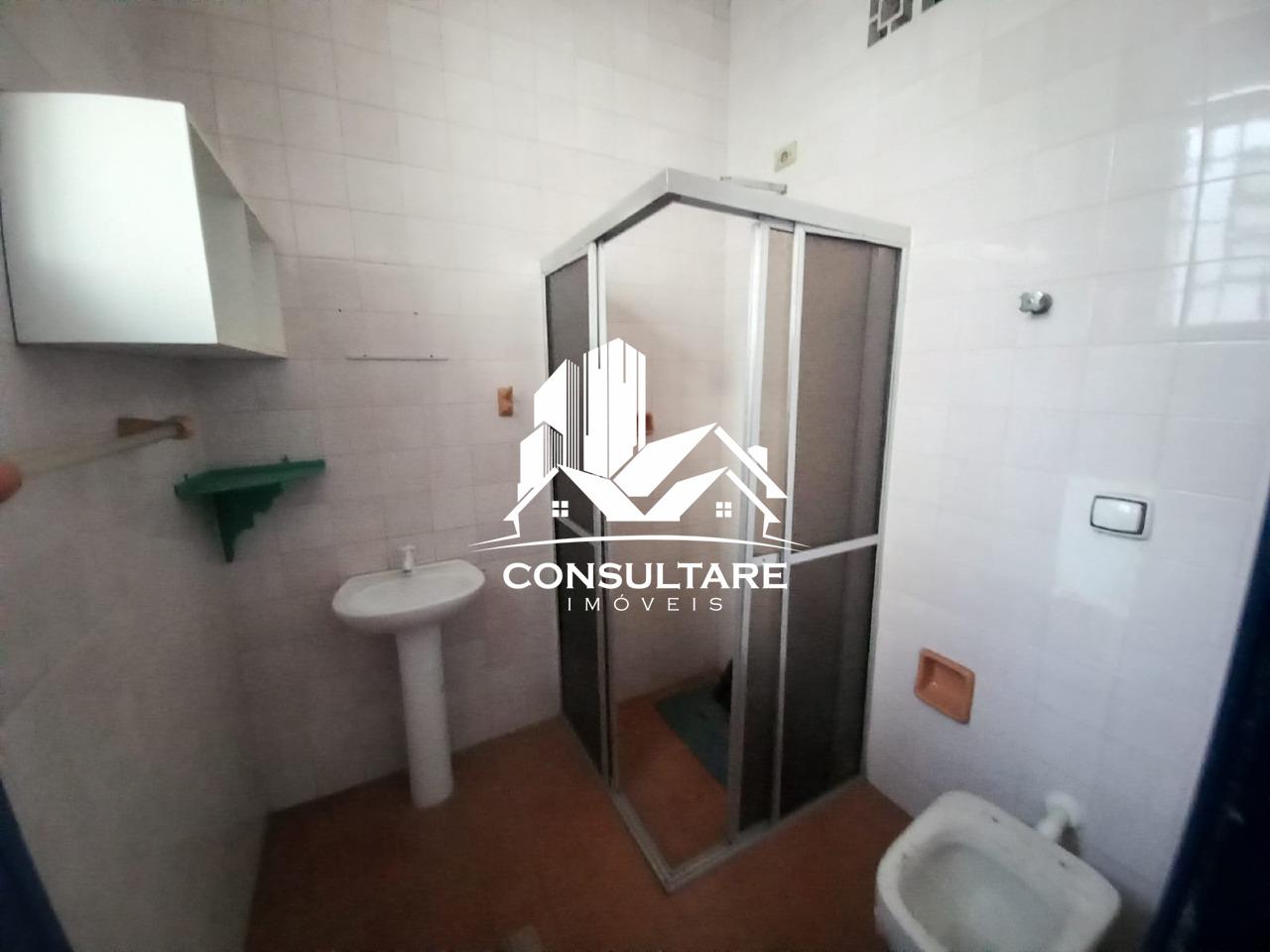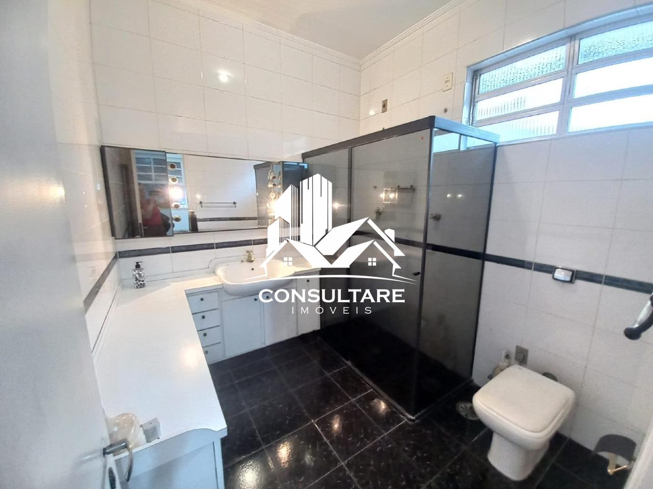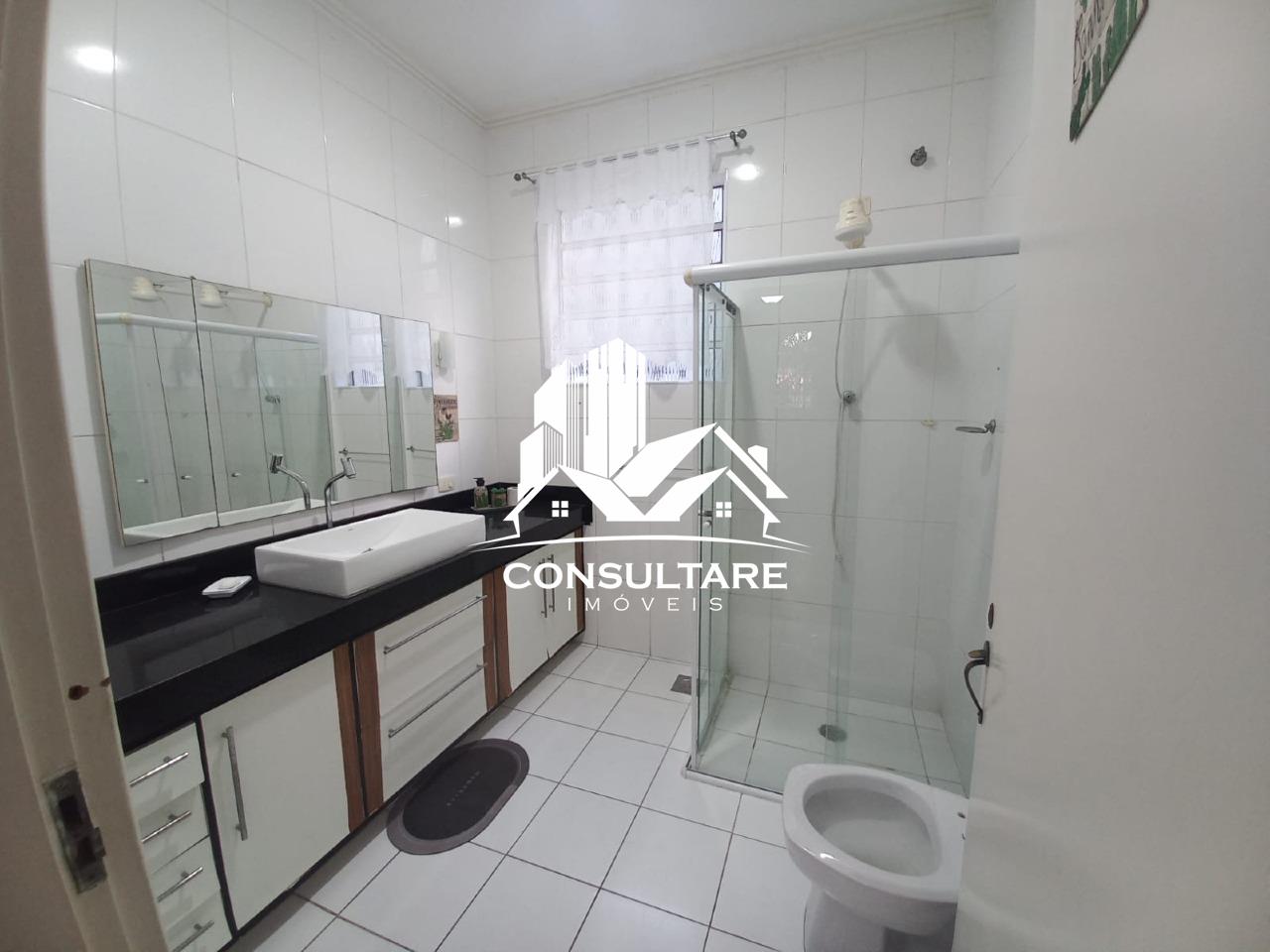 Banheiro Social grande com Box Blindex e gabinete;
