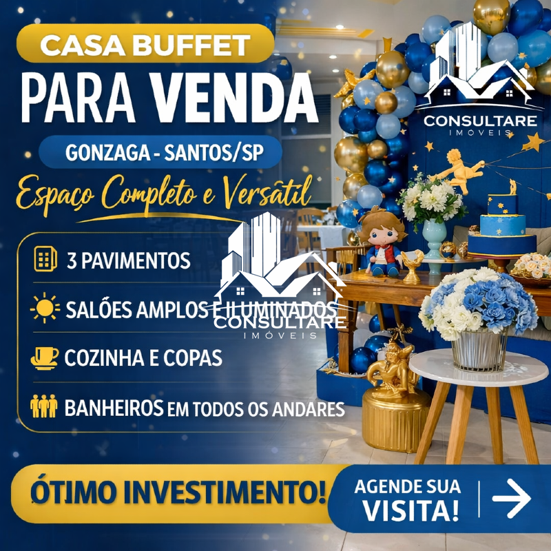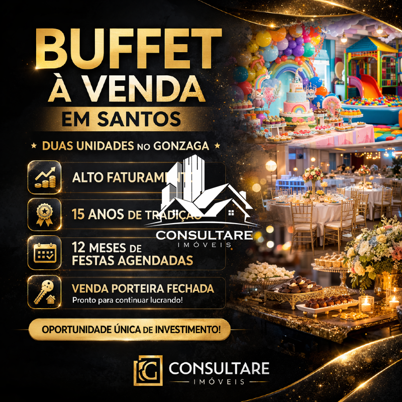 Excelente oportunidade de investimento com a venda de dois buffets infantis em pleno funcionamento em Santos/SP, ambos localizados no bairro Gonzaga, uma das regiões mais valorizadas e movimentadas da cidade.